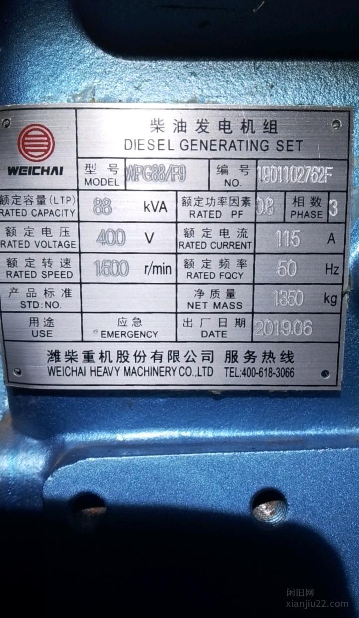 我们买的大发电机,除了正常的维护保养,一直没怎么用,九成新,属于潍柴品牌,额定容量88kva,6万卖的,现在25000转让。