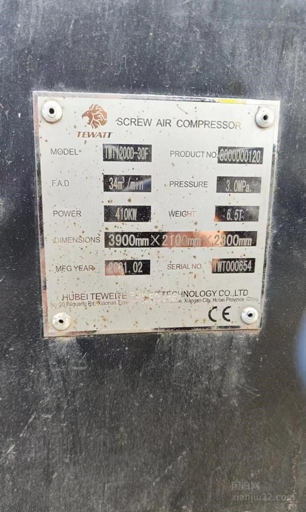 21年特沃特1200空压机,34-30,实表实况595小时,原版原漆,支持现场检测,调表包来回费用,