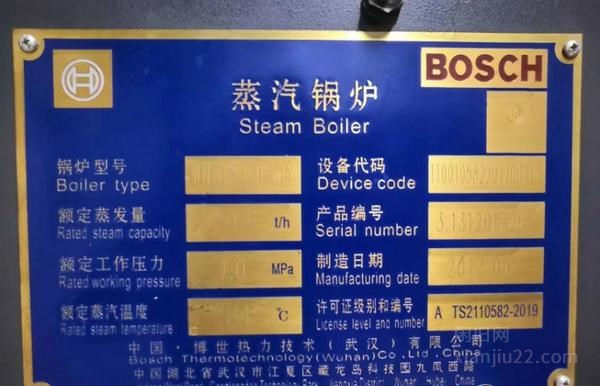 锅炉为博世热力技术有限公司制造品牌锅炉,设备型号为WNS1-1.0-QY,优质保养成色新设备完好无损,年检手续完备,因园区场地建设规划原因现处理。