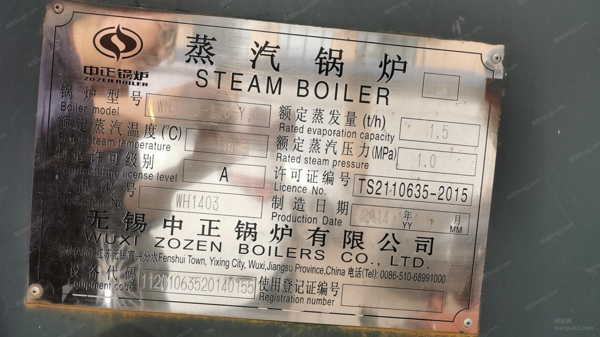 米业公司处理1.5吨燃气锅炉一台,买了6/7年。有需要的联系