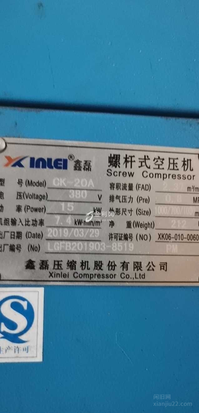 便宜出售一台15千瓦鑫磊永磁变频螺杆机,大品牌机,用得不多,没有任何问题