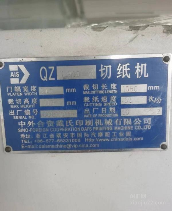 戴氏920程控双轨切纸机厂机转让,换大尺寸