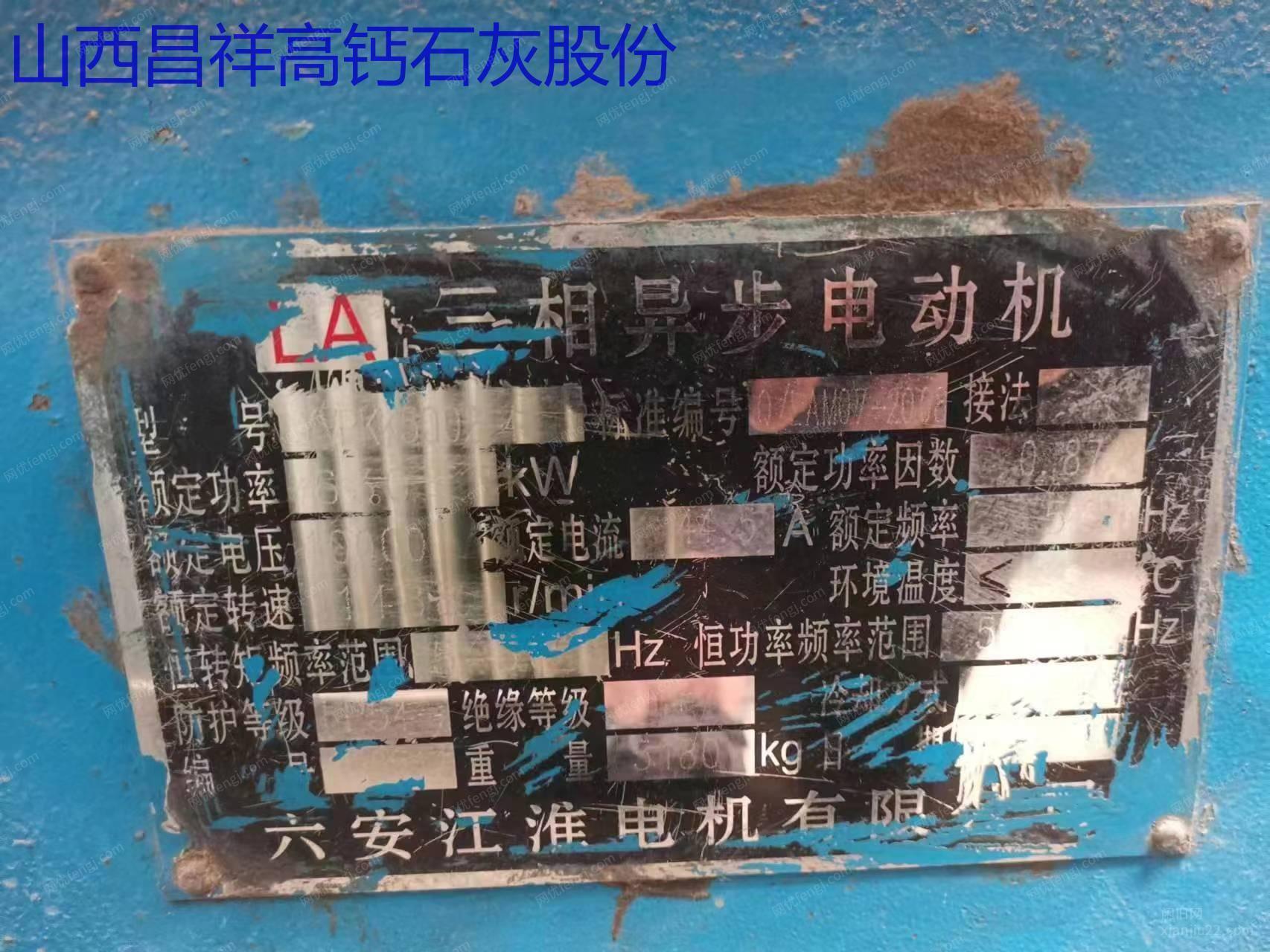 630kW*2,560kW*1,160kW*2企业闲置大小电机共几十台,山西昌祥高钙石灰股份有限公司有一批闲置电机需要处理,大电机有五台:630kW*2,560kW*1,160kW*2,还有小电机几千瓦到30千瓦不等有30台左右,有些还没有拆,可以整体打包处理,单独要买的也可联系我。 有意者电联!