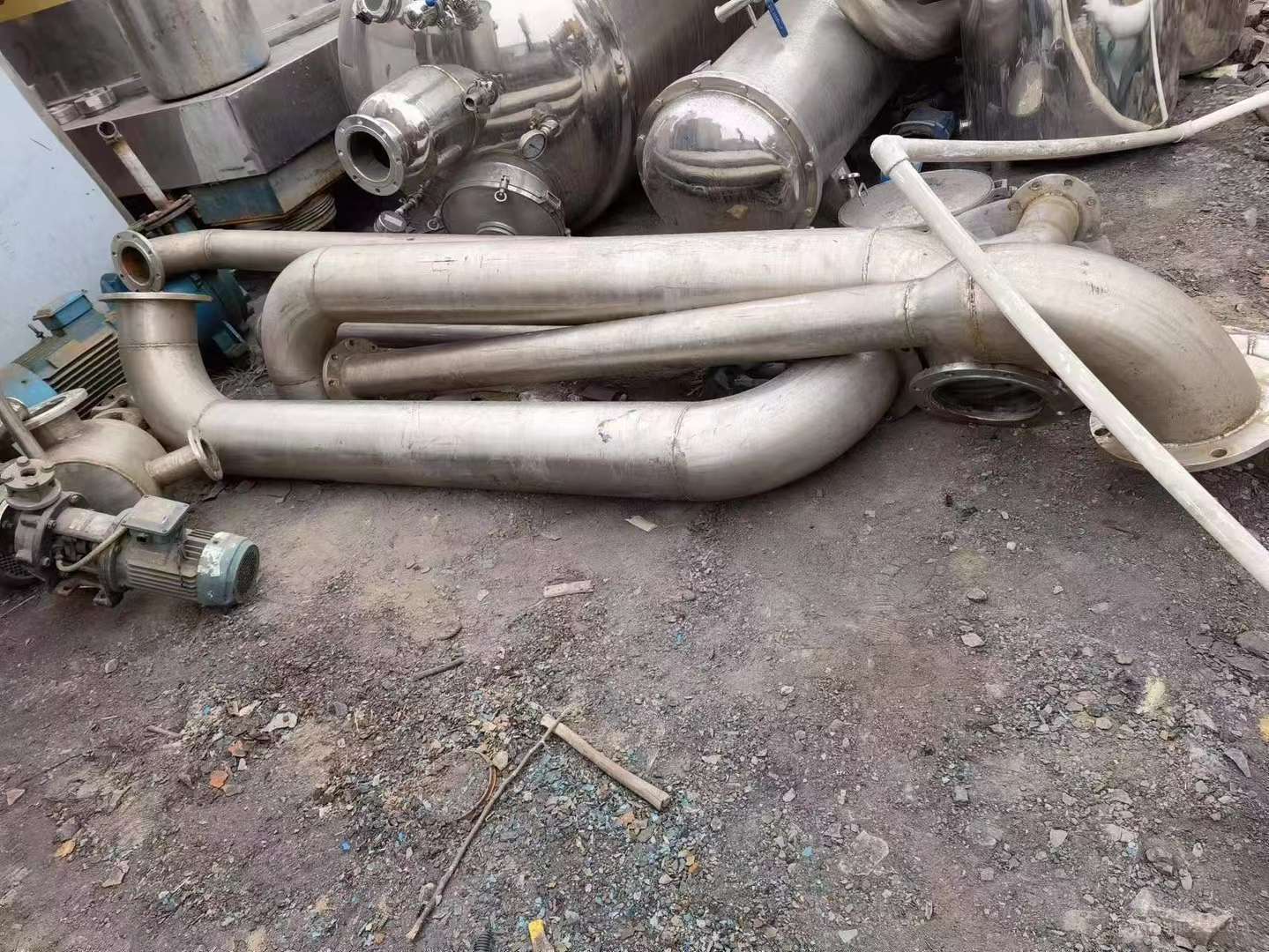 转让闲置一套两吨三效浓缩结晶蒸发器一套。316材质。整套设备