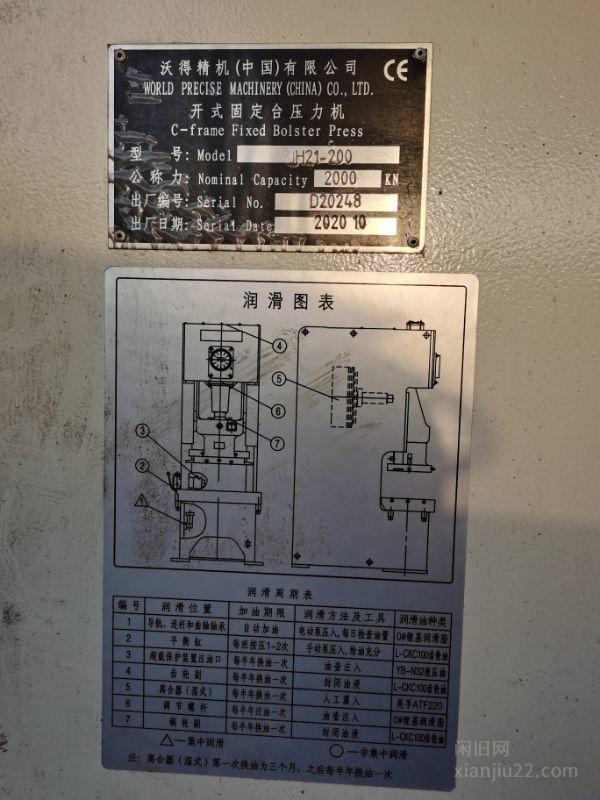 出售20年沃德200吨气动冲床1台