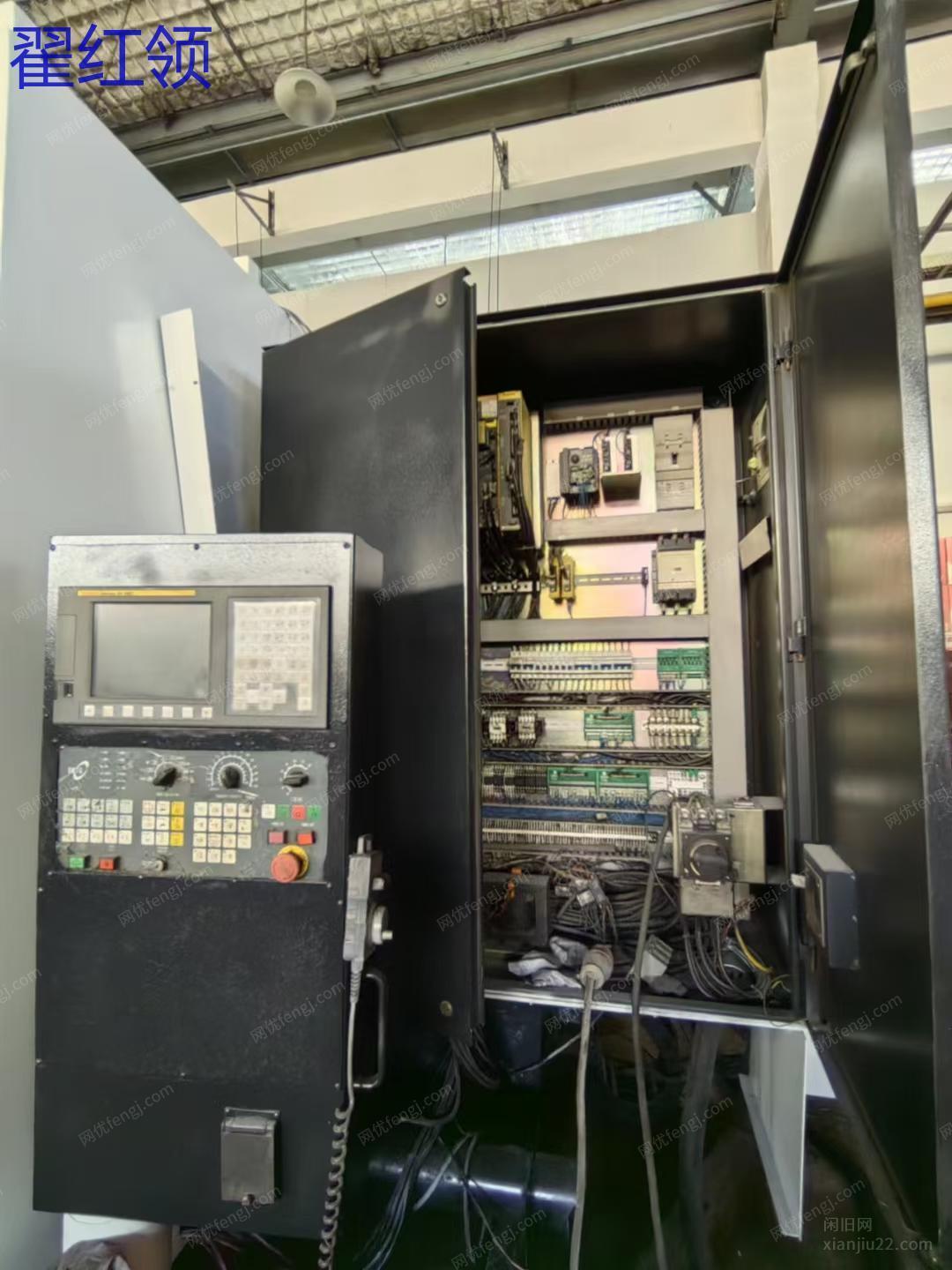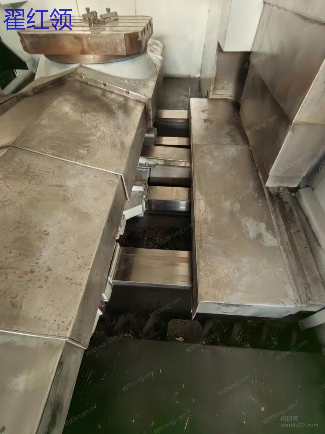 大连机床集团630单工位卧式加工中心,BT50齿轮头,千分之一度转台,发那科MD系统,2013年出厂,硬轨钢性十足。