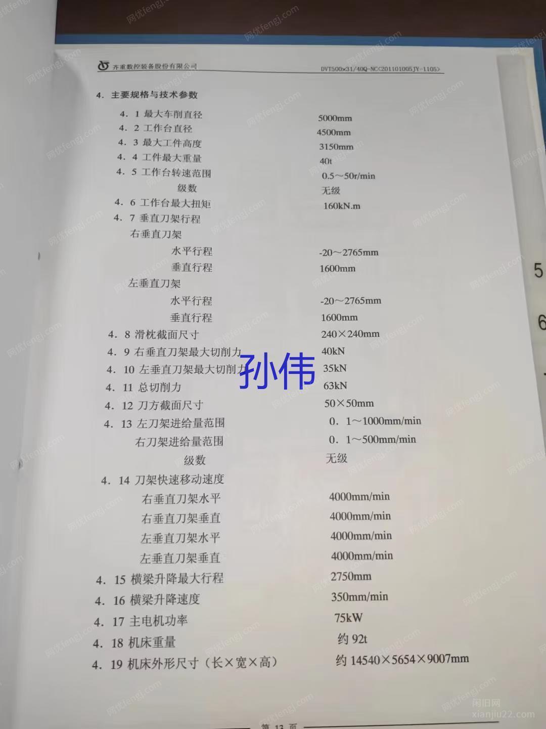 xlp齐一5米原装数控立车