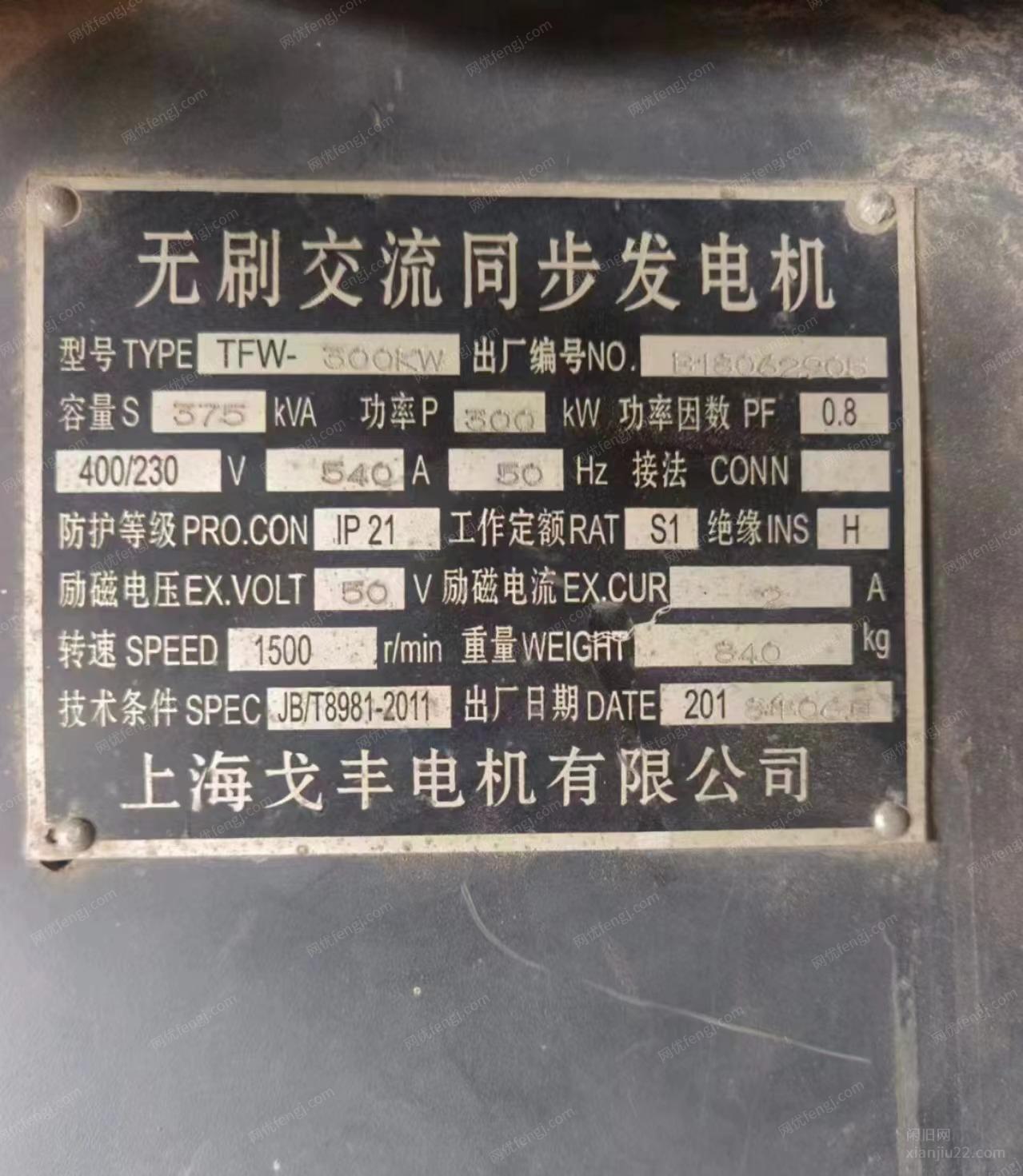 出售300千瓦柴油发电机组,品牌上海戈丰无刷交流同步发电机,买了用几次闲置下来低价出售