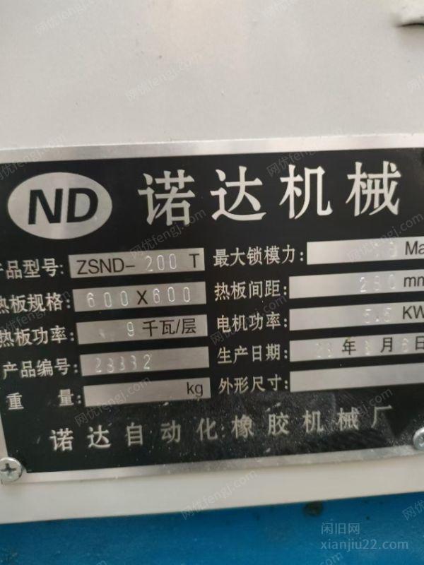 在位出售2023年产2RT硫化机,压力200吨,加热板60ox600