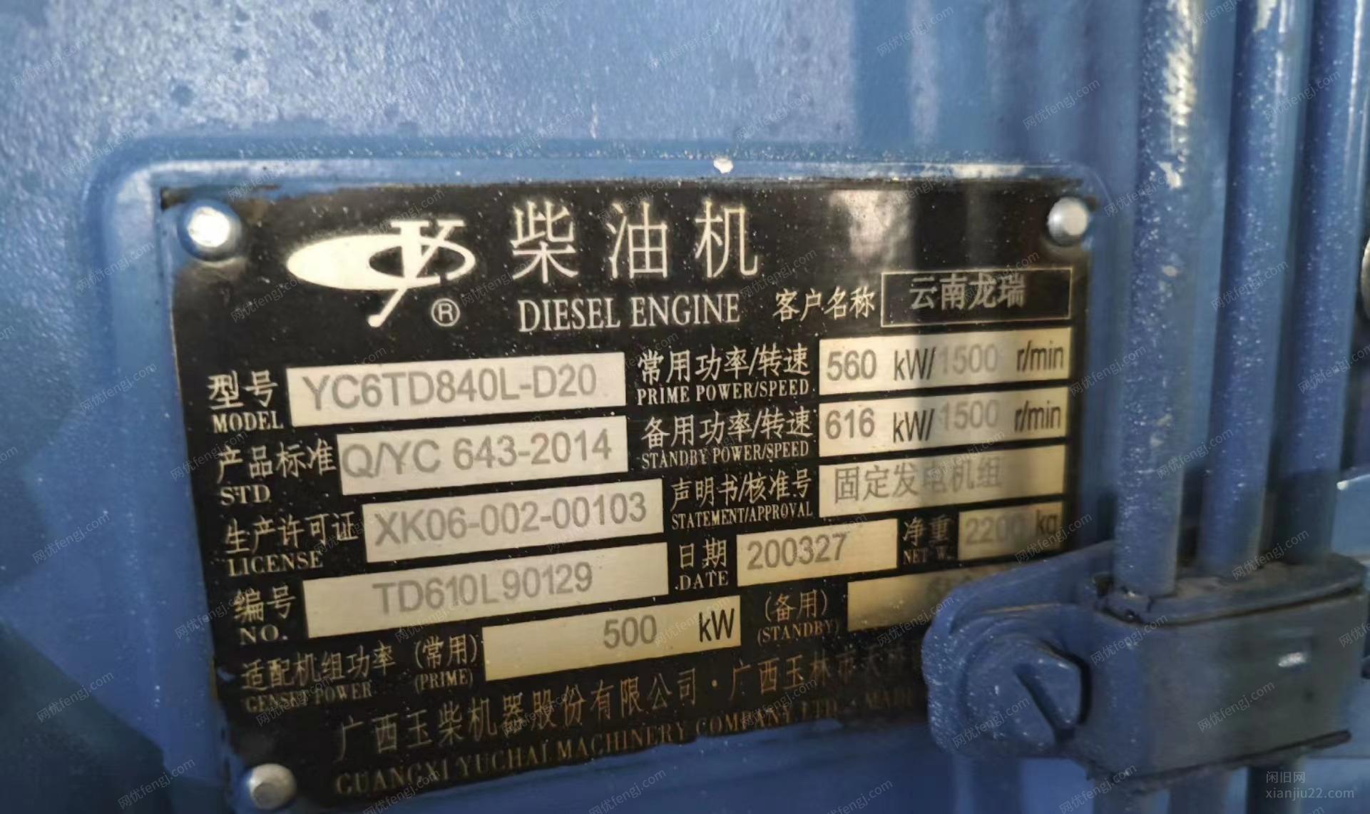 工厂备用机\因工厂拆迁\处理一台玉柴股份原装500KW发电机组\机子带负荷没得说的\只等有缘人!