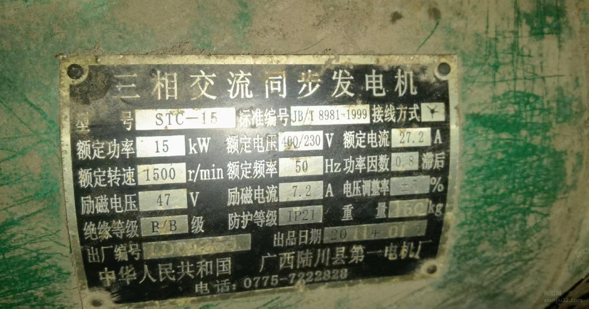 柴油发电机 15千瓦(kw)使用时间不超过10小时可以说几乎无损耗,以前经常停电仅用作应急用使用 现在停电供电局都通知 所以用不到了 放久了灰尘比较多 其他没毛病 380v/220v三相电两相都可以用 仅自提