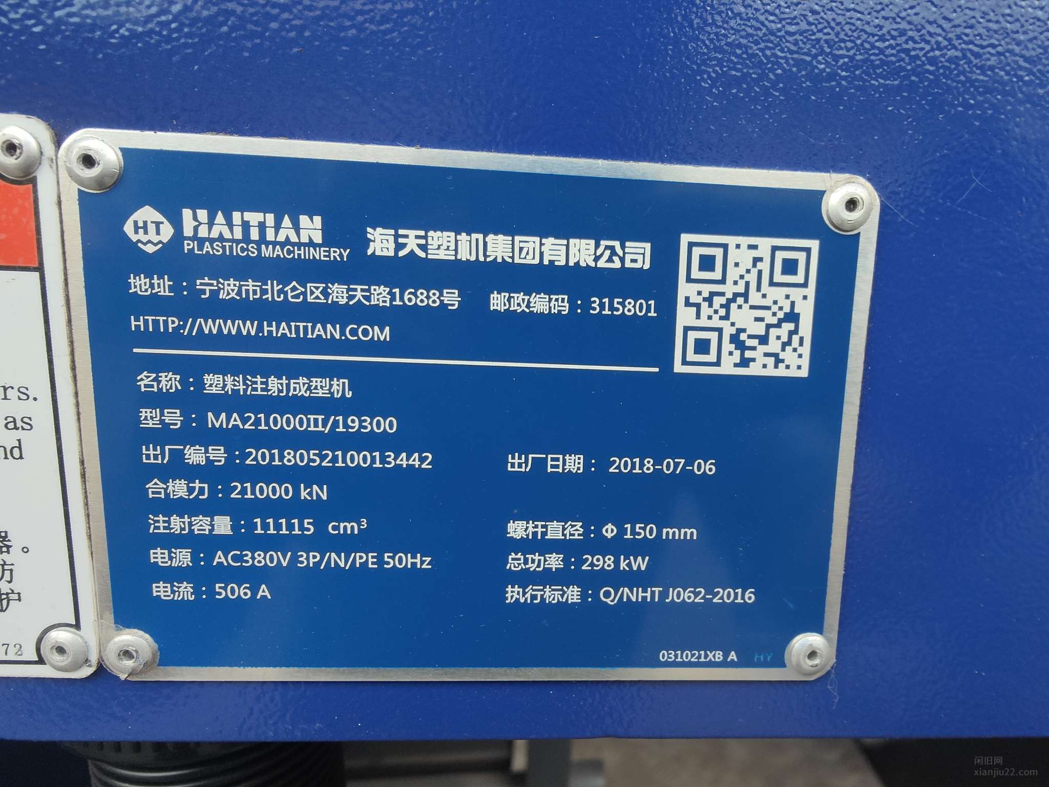 海天2100 T伺服机一台,下模1650㎜,螺杆150㎜,胶量11115克