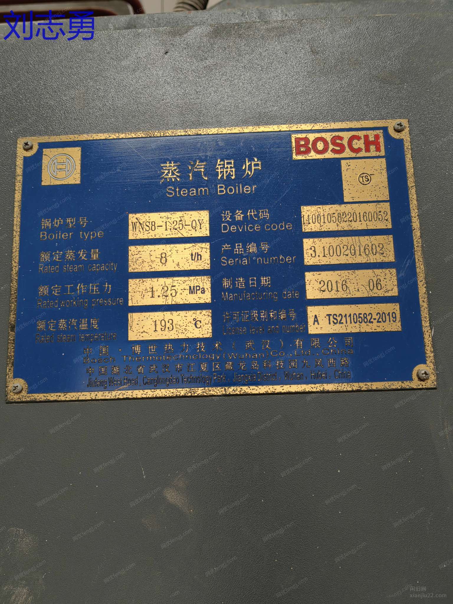 博世锅炉,8吨燃气蒸汽锅炉,13公斤压力,手续配件齐全,移装证明已经办理,锅炉几乎未使用。