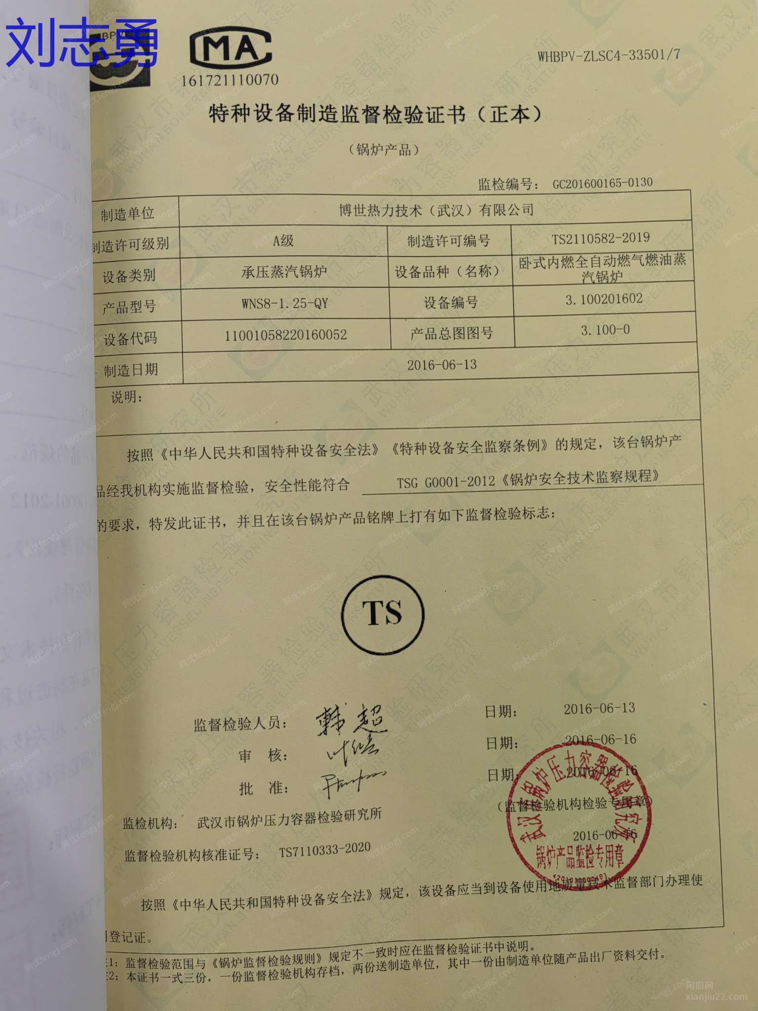 博世锅炉,8吨燃气蒸汽锅炉,13公斤压力,手续配件齐全,移装证明已经办理。