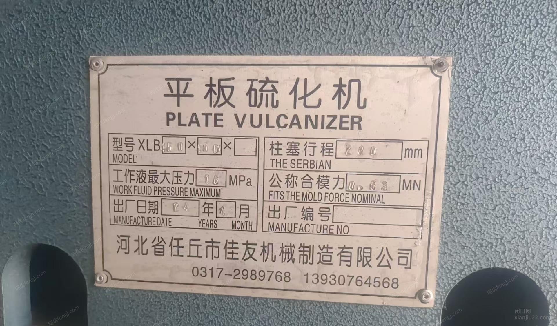 硫化机,今年4月份的机子,双出的,液压油满的、有防压手检测