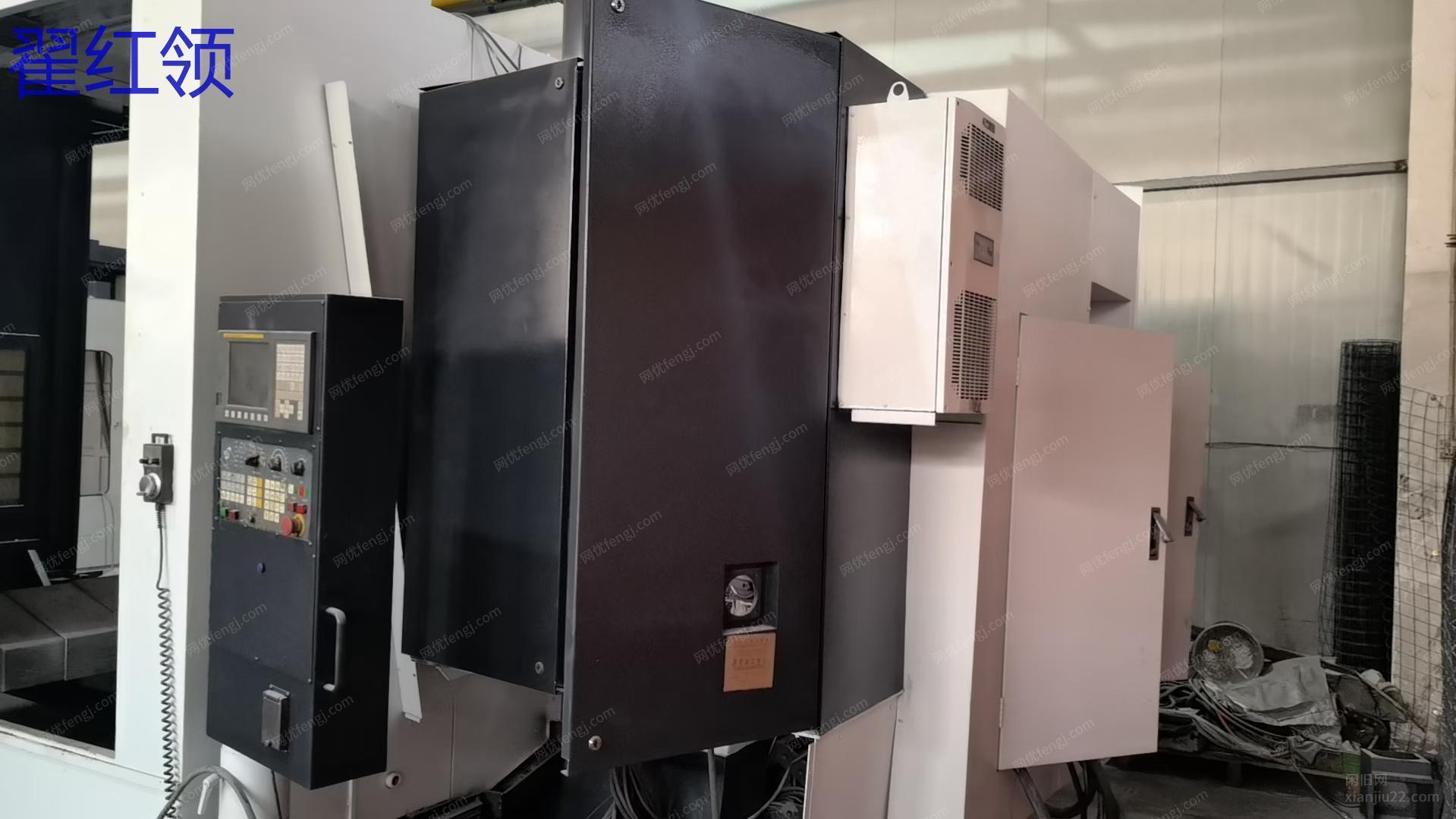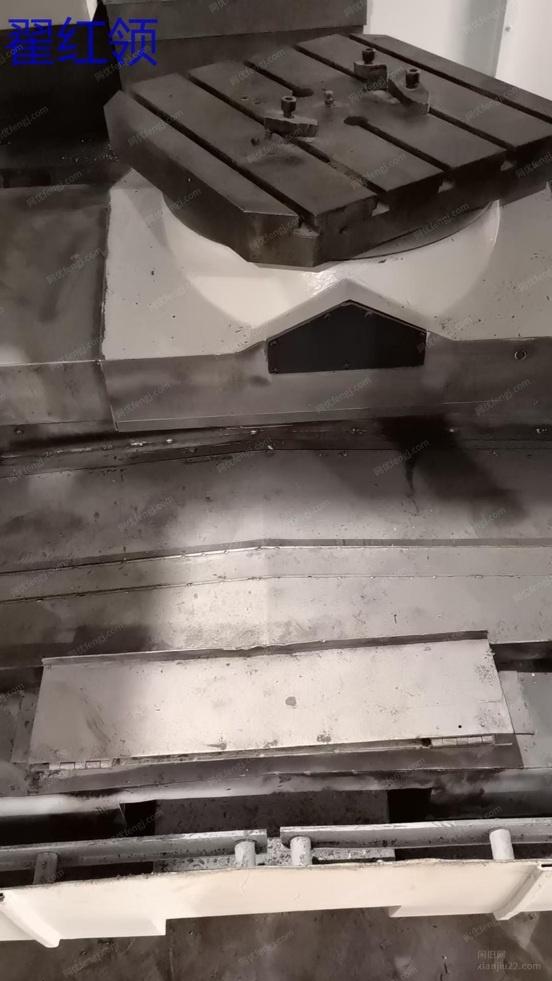大连机床集团630单工位卧式加工中心,BT50齿轮头,千分之一度转台,发那科MD系统,2013年出厂,硬轨钢性十足。