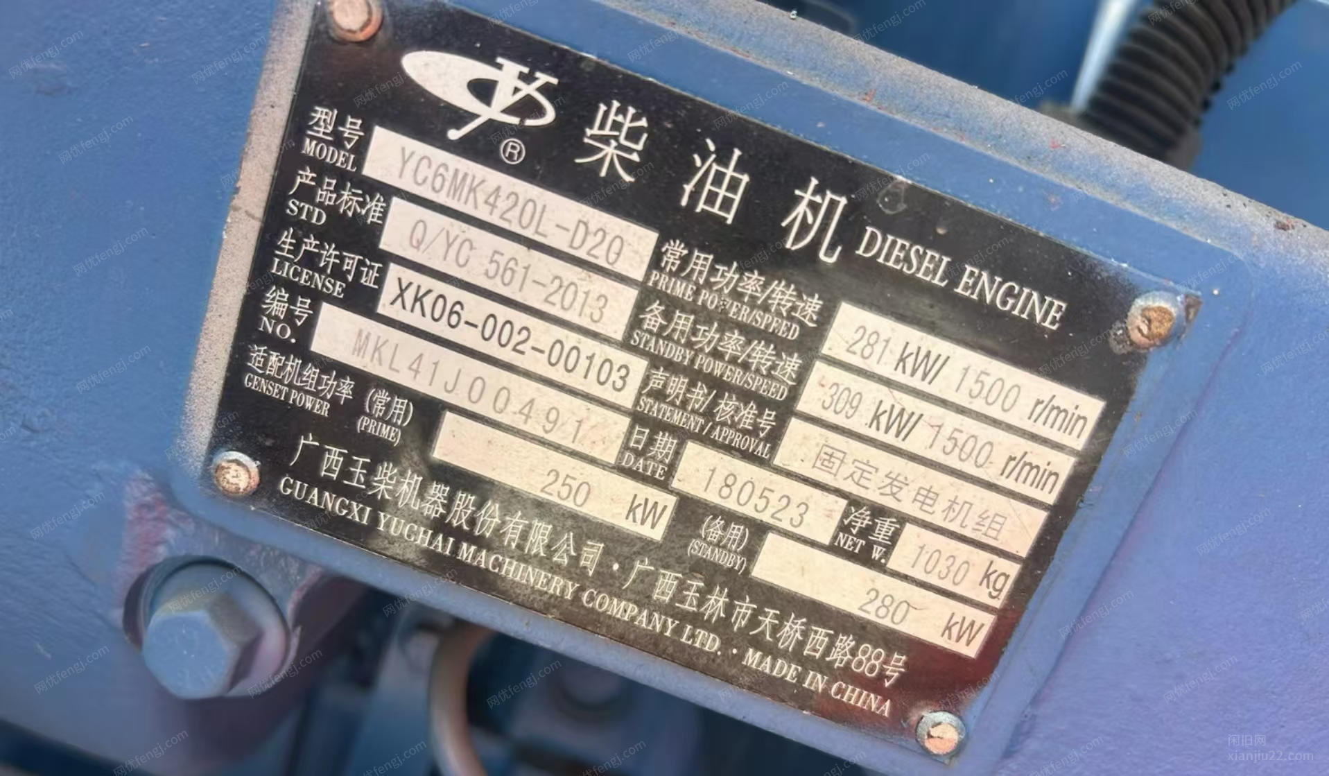 300千瓦玉柴发电机,2021年限电时购买现转卖,不议价