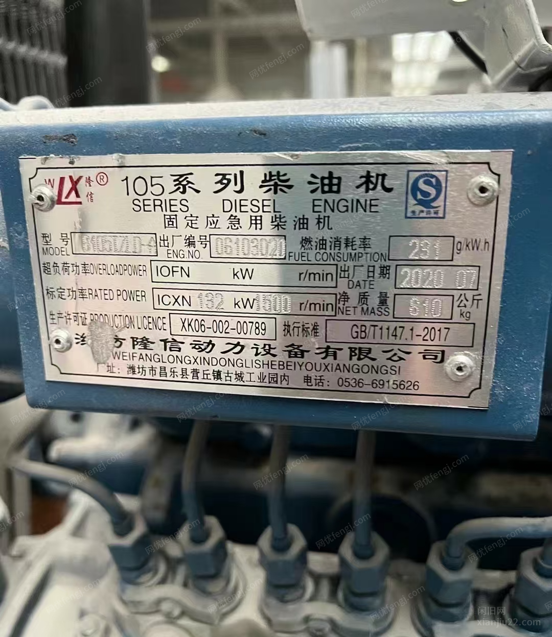 100kw发电机组配潍坊4105系列柴油机,只使用2个小时,几乎全新现在想低价出售,不喜勿喷,感谢!