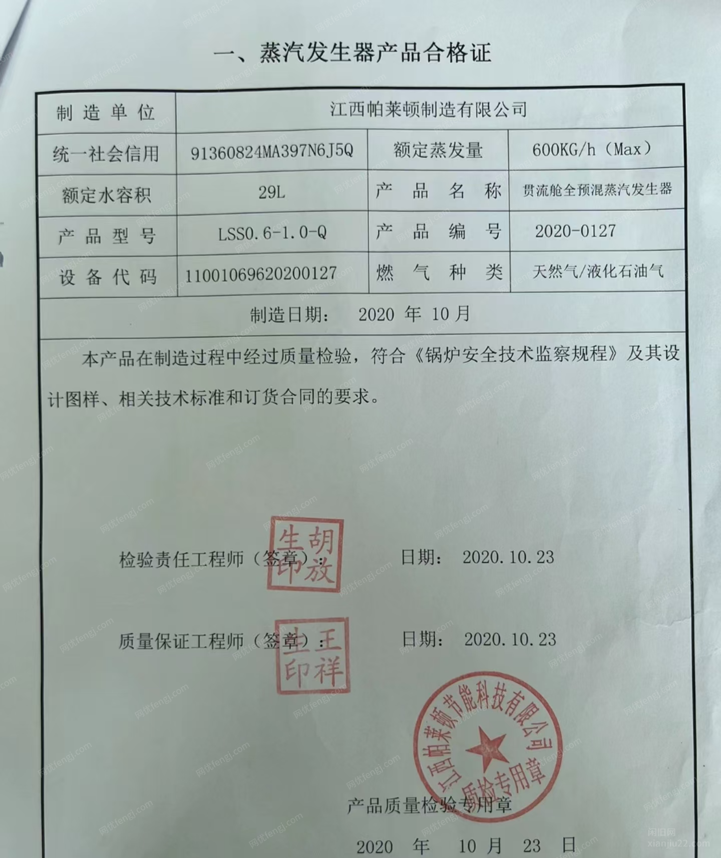 锅炉:帕莱顿冷疑蒸汽发生器,有需要的可以联系。