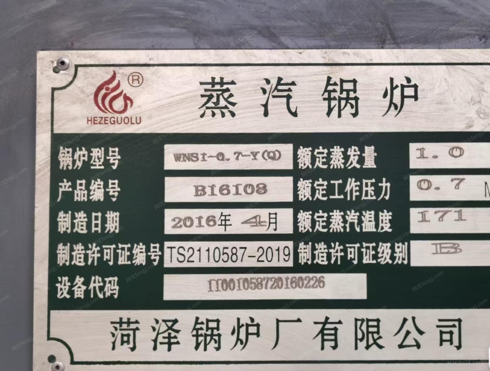 17年天然气1.0吨/h蒸汽锅炉一套,原价12.5万,只使用了三个冬天,使用总周期不到6个月,成色9.5成,制热水特别快,主要零部件均为进口,因公司设备升级,现闲置低价出售,非诚勿扰!