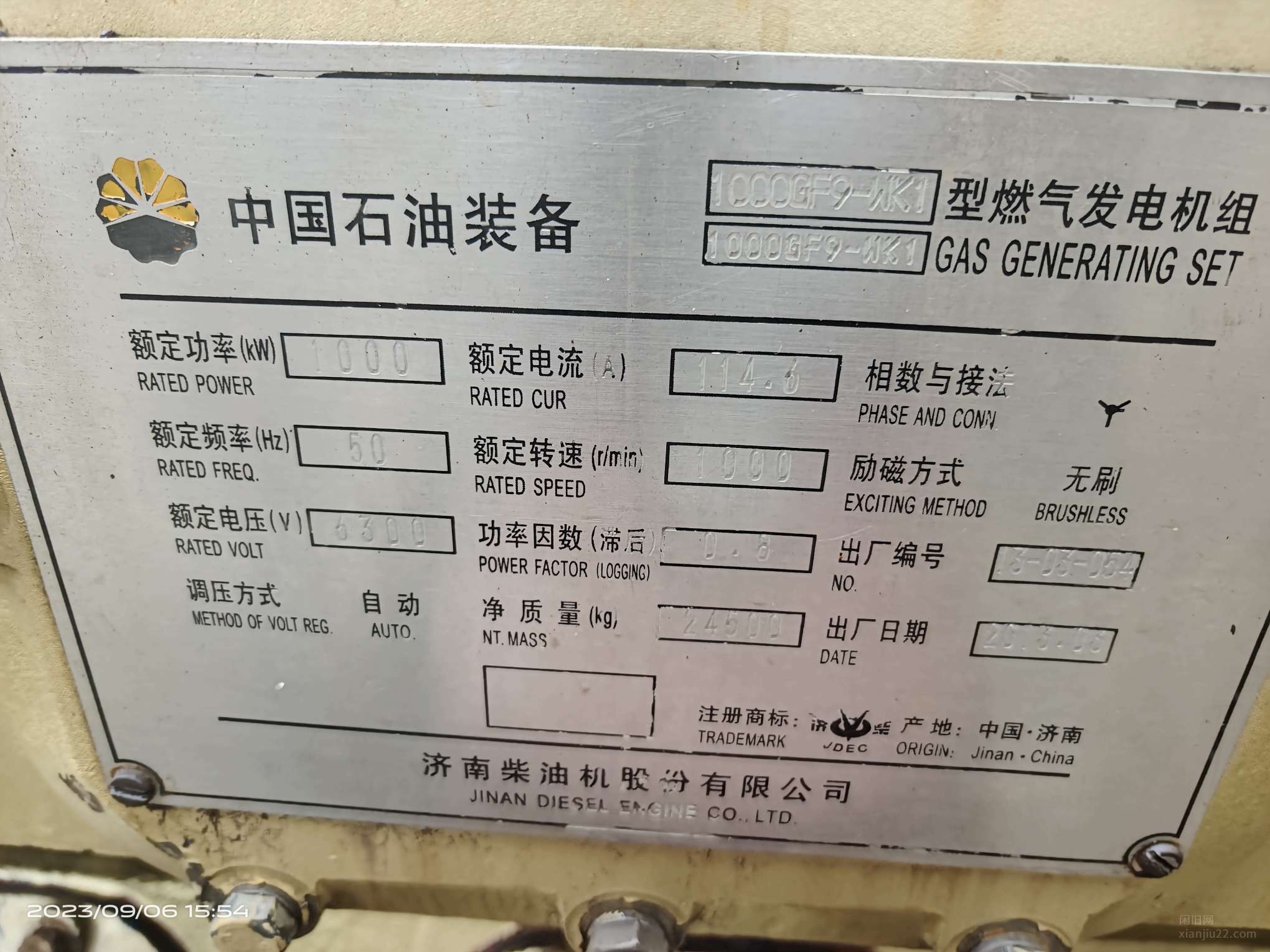 济柴原厂16v190系列1000千瓦,瓦斯机 带控制柜全套
