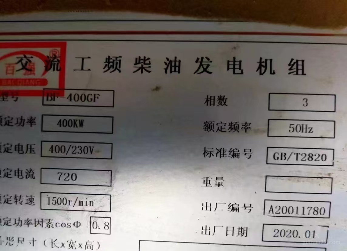 急出一台400KW大型交流工频柴油发电机组,19年底产,9成新,功能完整一直放到现在至今还没有使用过