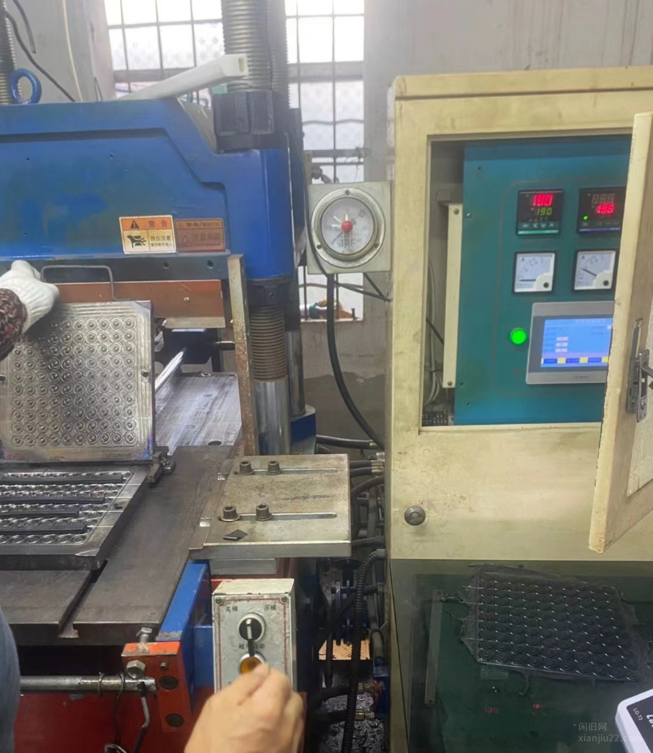 个人转让100吨2RT硫化机,平板机,橡胶机设备原来是慈溪远大的后来拉去宁波华震机械厂重做的油路与电路与电热板,设备改了有二年多,没有铭牌,电热板尺寸440×500,加高立柱,总行程可以达到450,正常使用中,换200吨腾地方