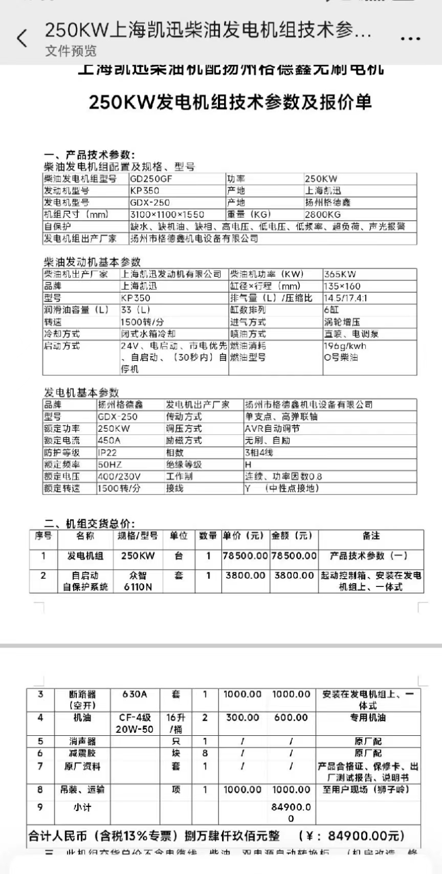 发电机组250kw...2022