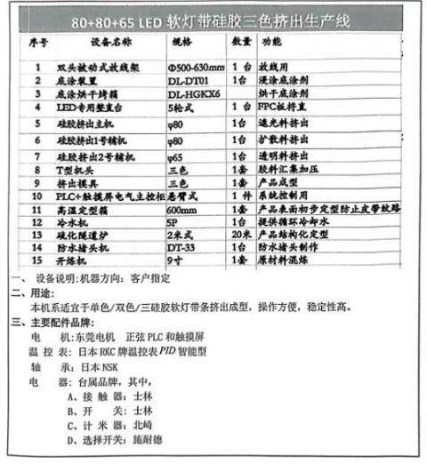 工厂闲置23年80+80+65 LED软灯带硅胶三色挤出生产线、20米硫化隧道炉、500mm高温定型箱、冷水机、9寸开炼机、模具等