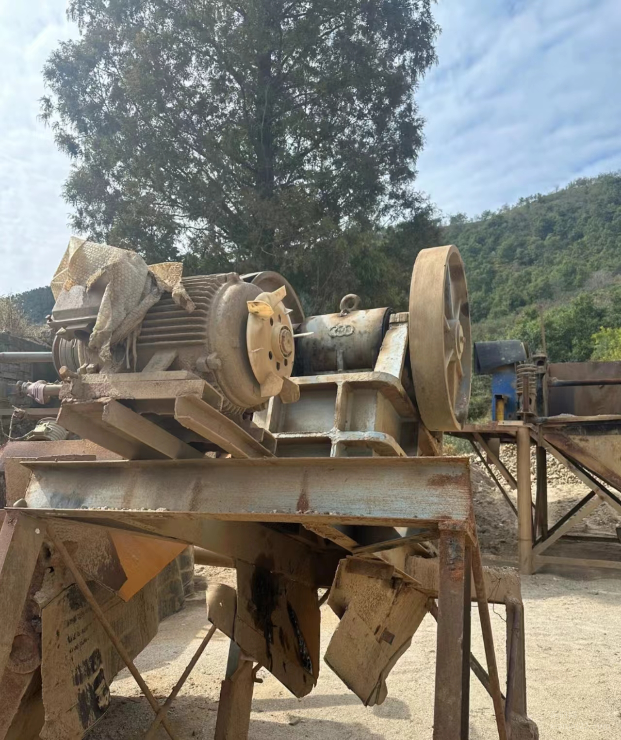 低价出售颚式破碎机,型号为200-350型的,小时产量25吨,配备电机30千瓦.