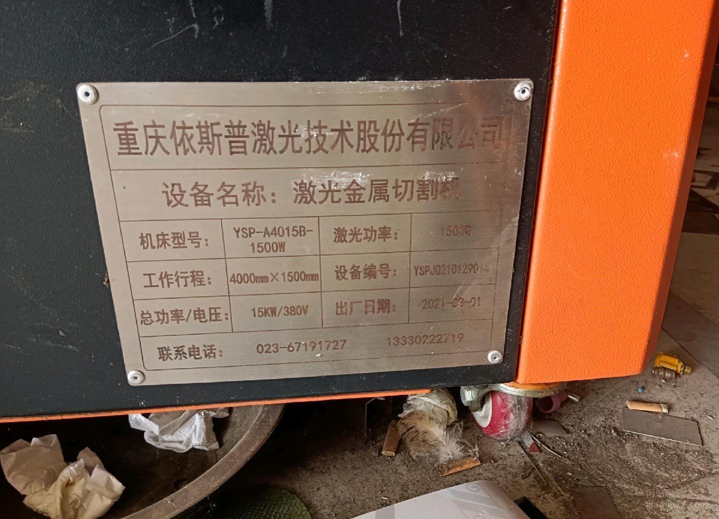 光纤激光切割机,依斯普。1500瓦单平台,1.5米x4米。2021年出厂,实际使用几百个小时,机况良好,九成新。配激光切割专用空压机,价格实惠