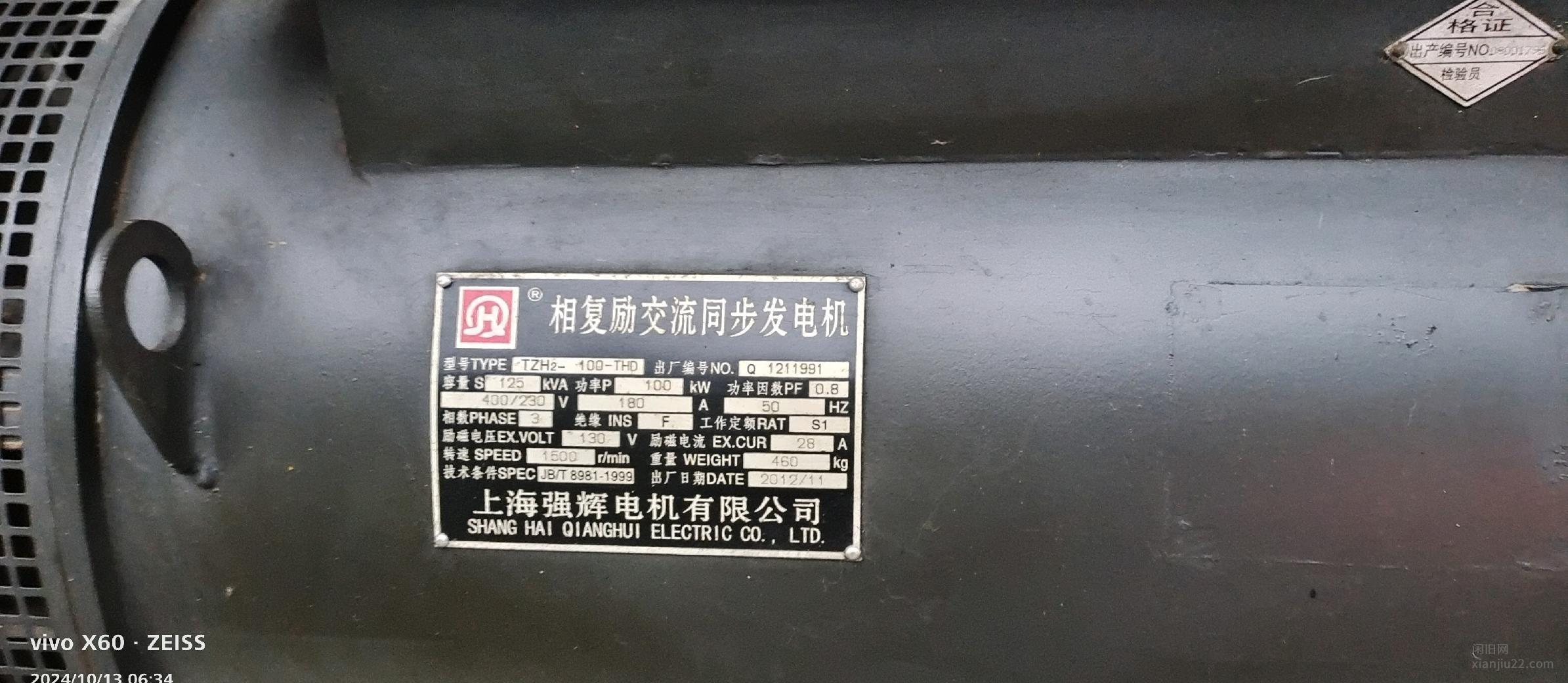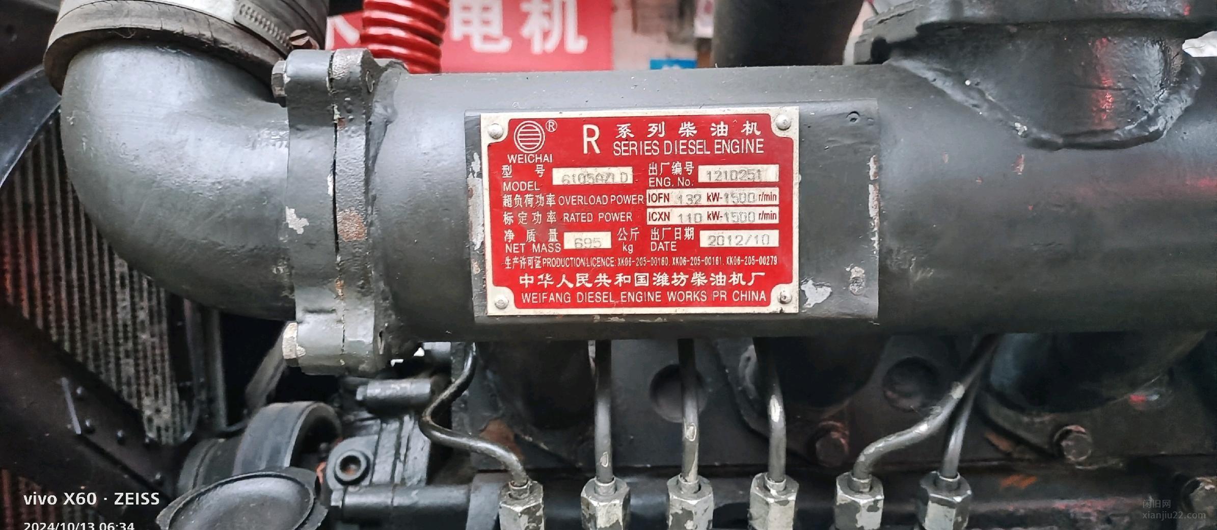 100千瓦发电机组,6105潍柴发动机,八成新,打火即着,发电正常