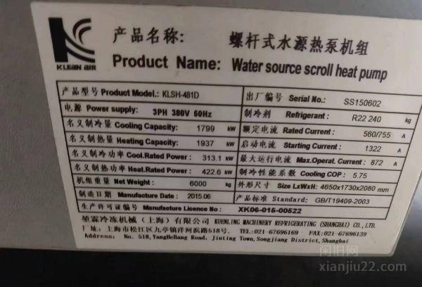堃霖牌地源热泵主机1799kw,1套,45kw变频泵2台,两台压缩机(故障),有整套配套设备。