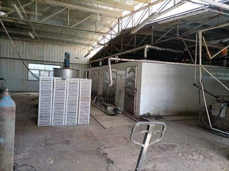 生产线包括:筛果机1台、洗果不锈钢桶2套、熟果捞罐2套、蒸汽煮锅2套、蒸汽熬糖锅2套、打浆机2台、大小果酱搅拌罐各1台、果酱泵2台、烤房6套、风机6台、散热器6台、烤片车36台(配套玻璃片齐全)、刮片机3台、推果片小车50辆(配套不锈钢托盘)、不锈钢码片台案8条(长6米,宽0.48米,高0.25米)、山楂糕塑料方斗200套、烤球托盘1200个、包装桌案50台、不锈钢糖稀容器罐(长9米,直径1.3米)、山楂球搅拌机械3台、自动切片机2台、半自动切片机2台、现代下走纸包装机2台、制球机1台、真空包装机1台、山楂糕切块机1套、高速上走纸包装机1台、电锅炉(含20吨保温水箱)1台。化验室全套设备,配料室全套设备。