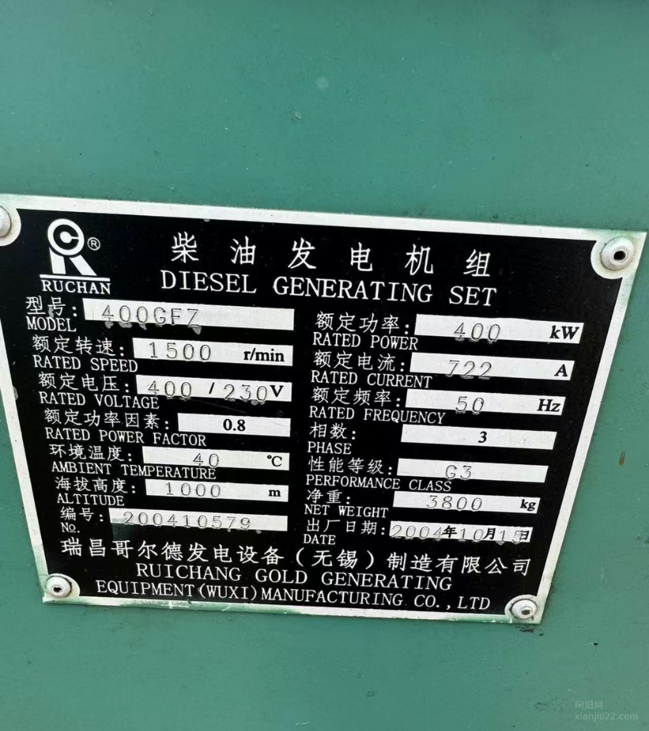 瑞昌哥尔德柴油发电机组400GF7,额定功率400KW 斯坦福柴油发电机组