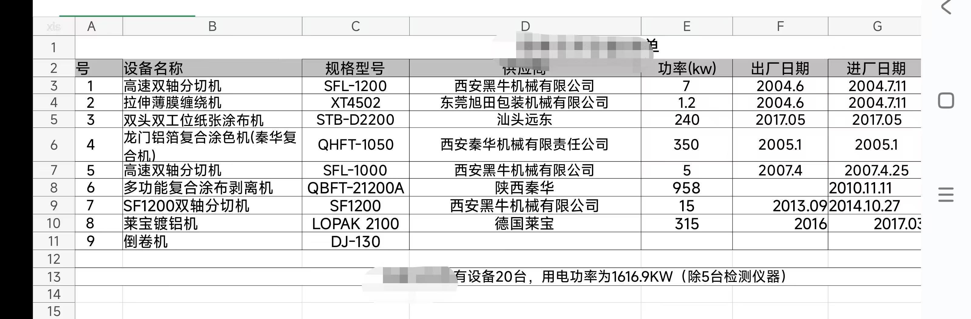 整个工厂设备打包出。高速双轴分切机SFL-1200、拉抻薄膜缠绕机XT4502、双头双工位纸张涂布机2200、龙门铝箔复合涂色机(秦华复合机)1050、高速双轴分切机1000、多功能复合涂面剥离机21200A、SF1200双轴分切机、莱宝镀铝机2100、倒卷机130