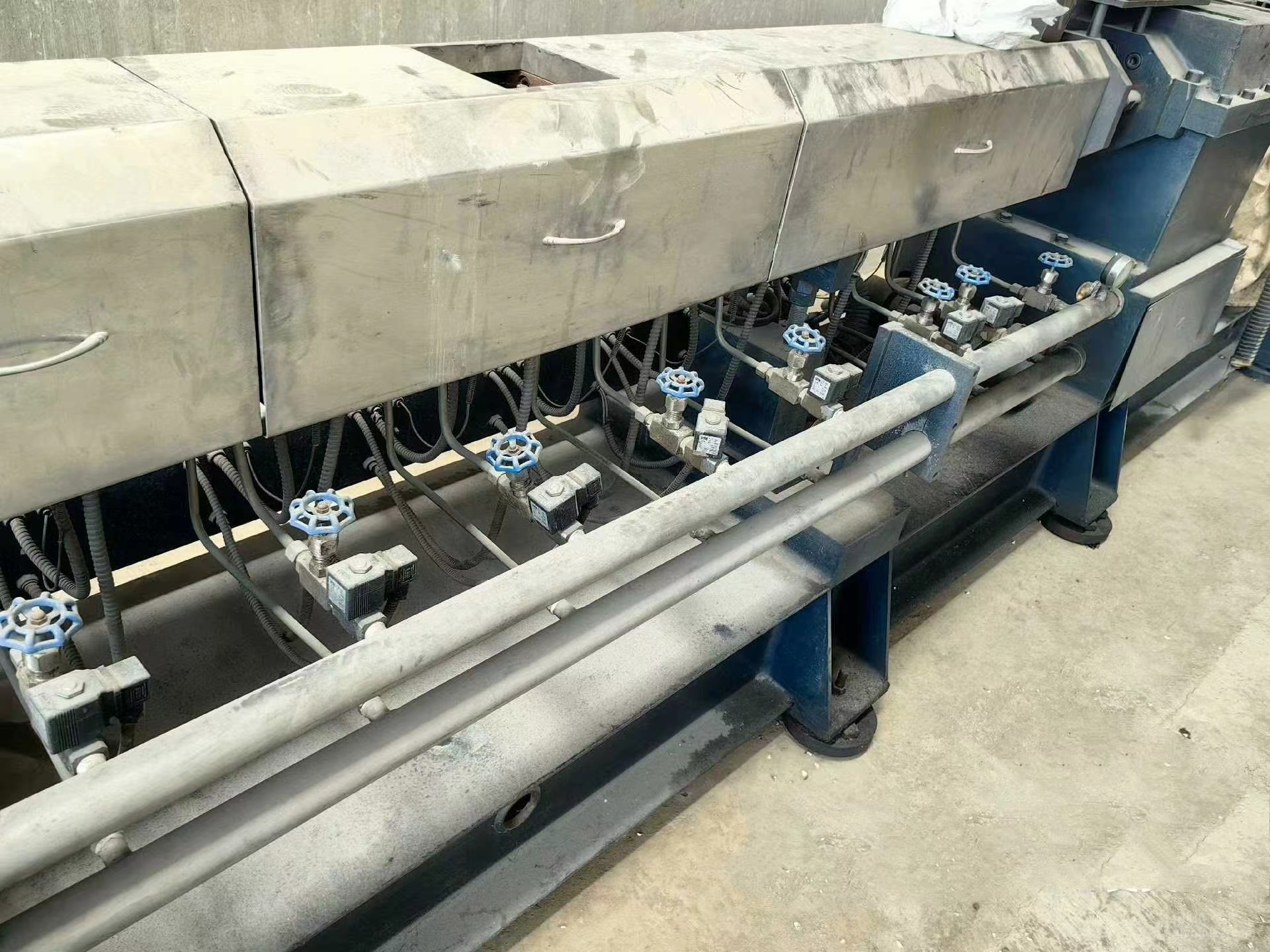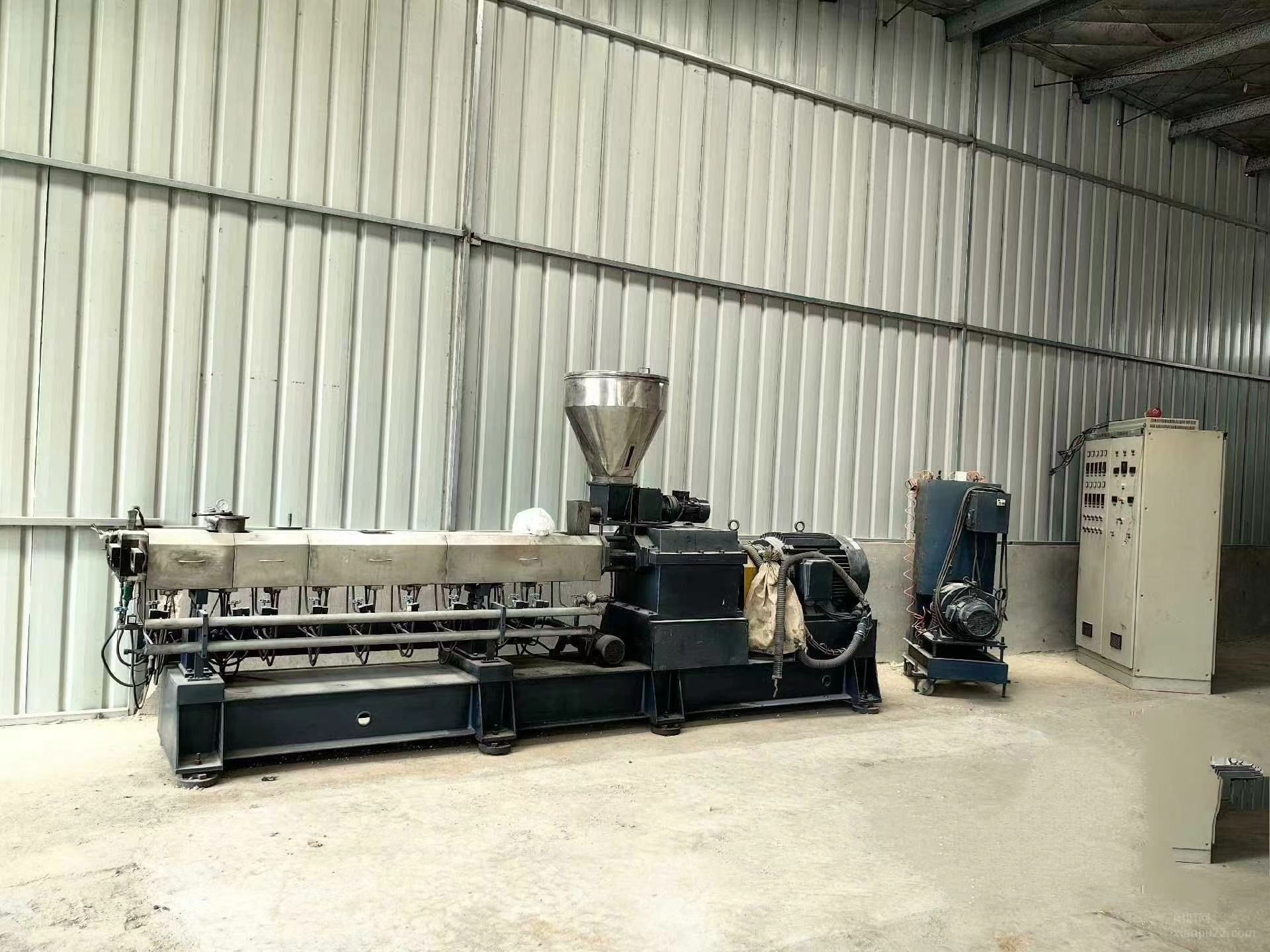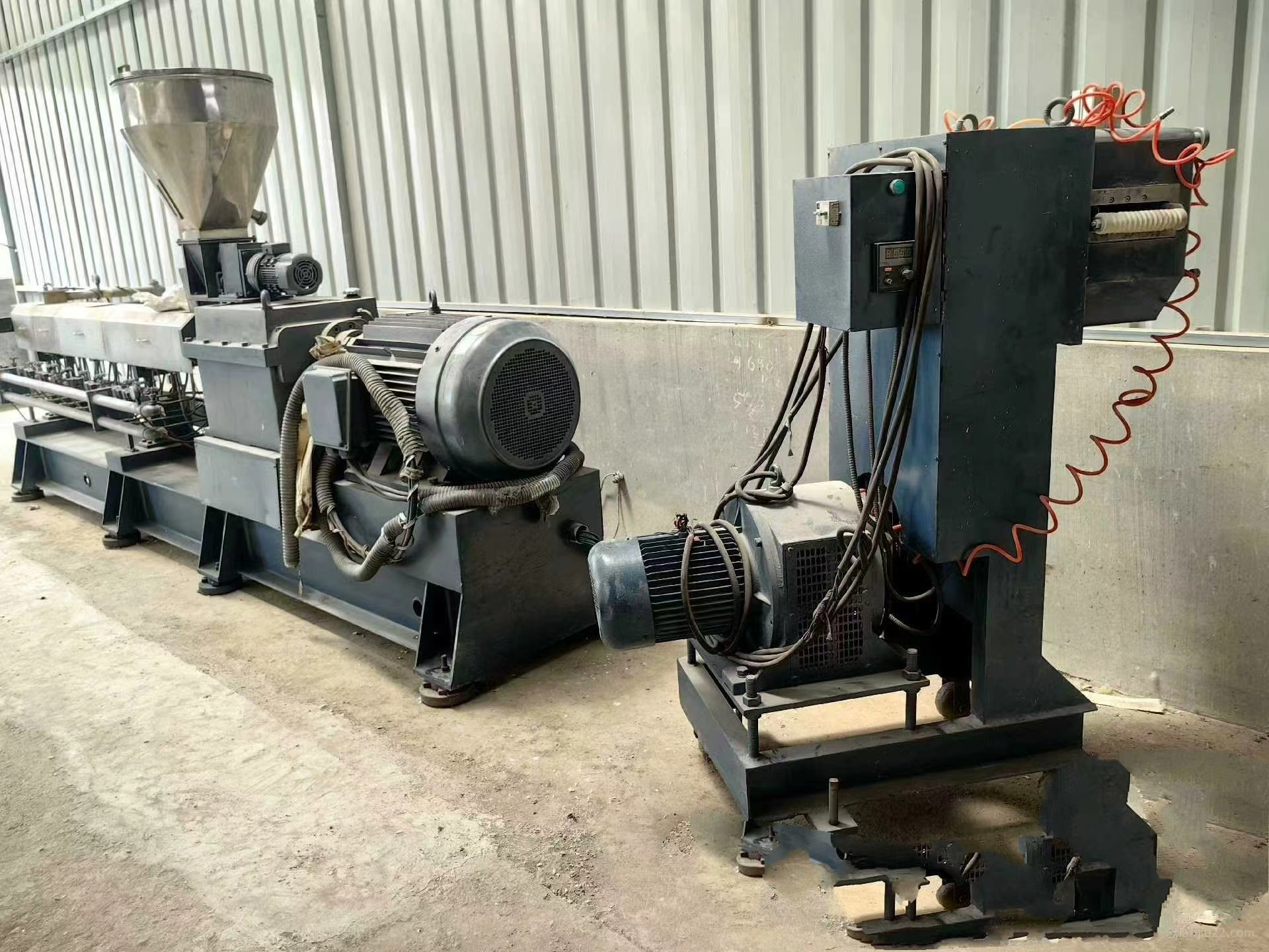 山东 青岛出售南京欣辉65双螺杆挤出造粒机,上料机,储料罐,切粒机,液压泵,油泵冷,却水箱,真空泵等整套设备,有需要的电话联系