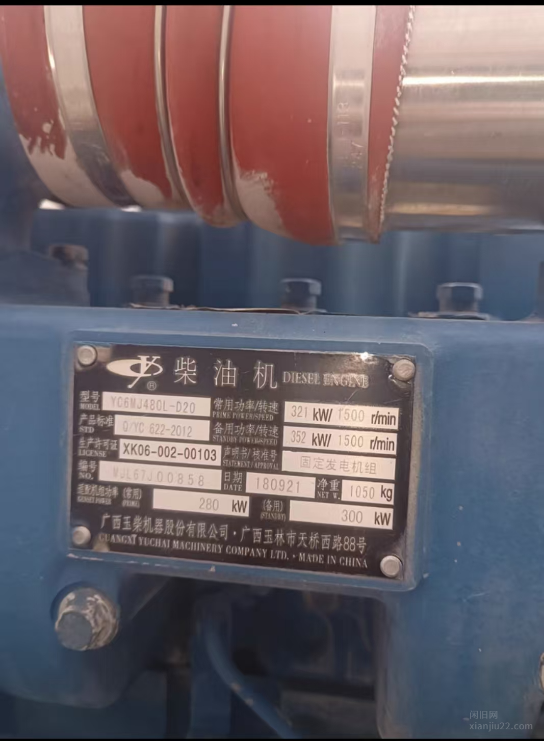 2019年生产玉柴YC6MJ480L-D20柴油发电机,湖北恩施出售玉柴YC6MJ480L-D20柴油发电机,性能优*良,配斯坦福全铜无刷350kW电机,交流电输出,电启动便捷可*靠。成色轻微使用痕迹,已用1-3年,2019年生产,适合工厂备用或大型项目使用,有意者电联!