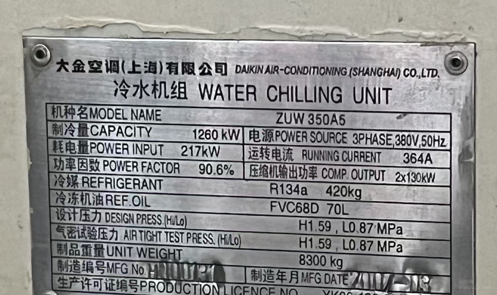 大金中央空调螺杆式冷水机组3台1260kw制冷量闲置,