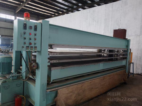 出售一台二手热压机,功率30KW,压板尺寸1600*4000mm,压板厚度52mm ,共3层,层高100mm,额定压力25吨/平米,总吨位160吨