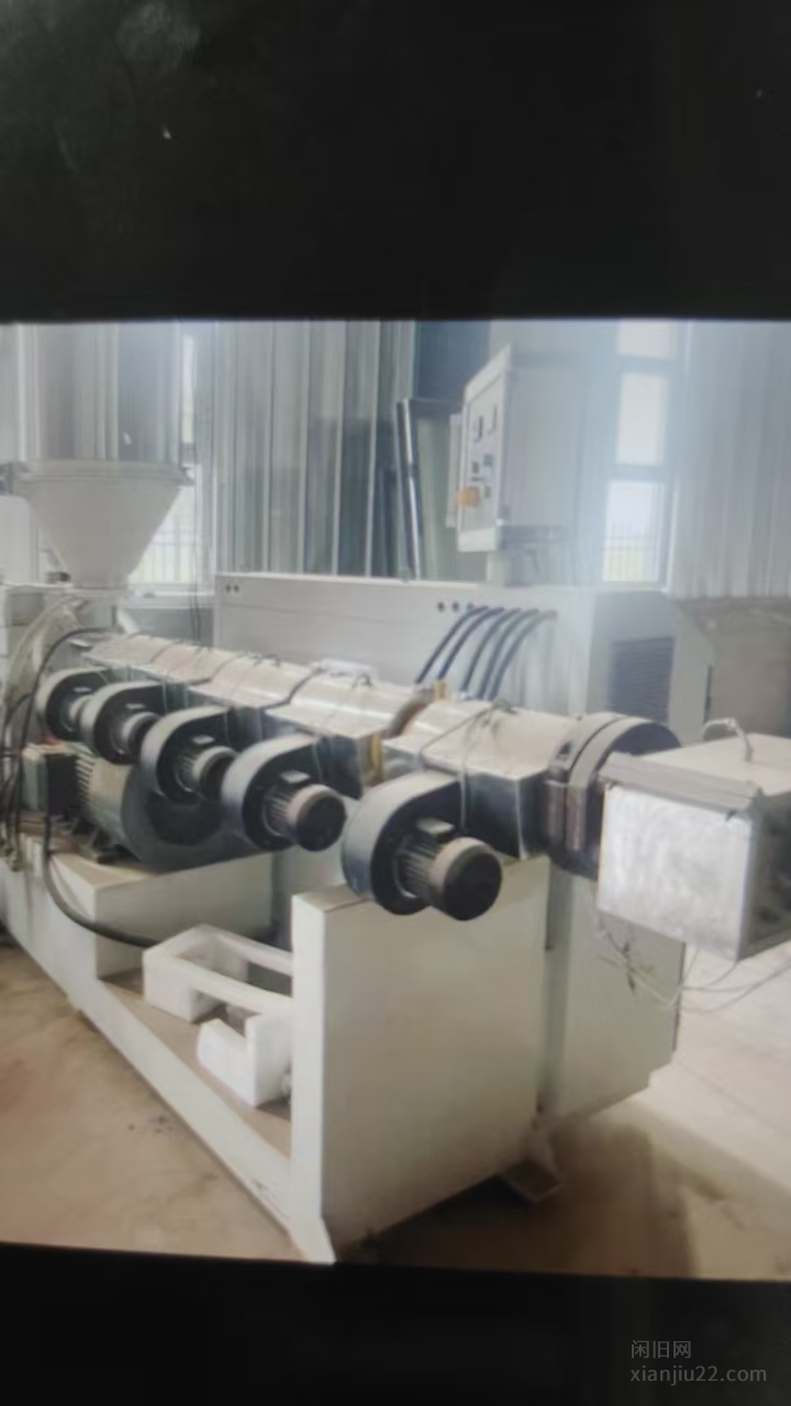 MBBR填料生产线 包涵以下部分: 65/33单螺杆挤出机(37千瓦),MBBR生物填料挤出模具(38孔一出三),真空定型箱8米,牵引机 切割机(伺服电机控制),MBBR填料生产线配套 冷水机,型号HTI-10/12AD, 深圳亨瑞达,全套设备9成新,回去组装就可以使用,