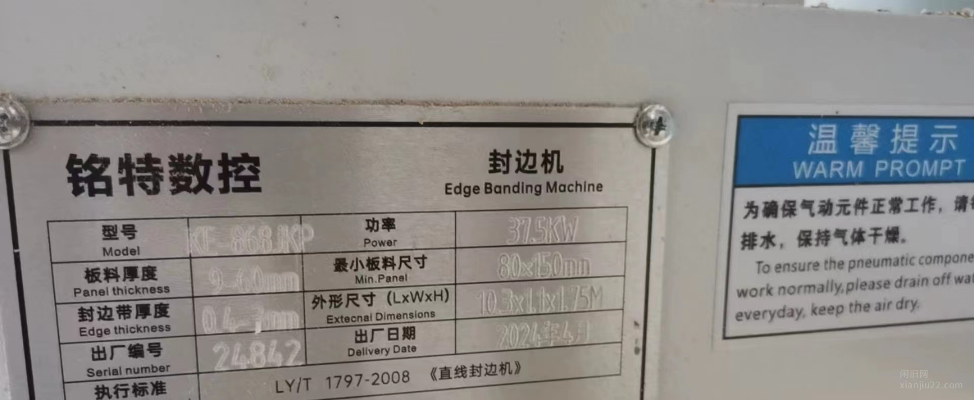 24年4月份在保期,几乎全新广东铭特868JKP,履带机,铝木一体封边机,双胶锅,双色胶机,预铣,双粗修,双精修,四跟踪,可封蜂窝板
