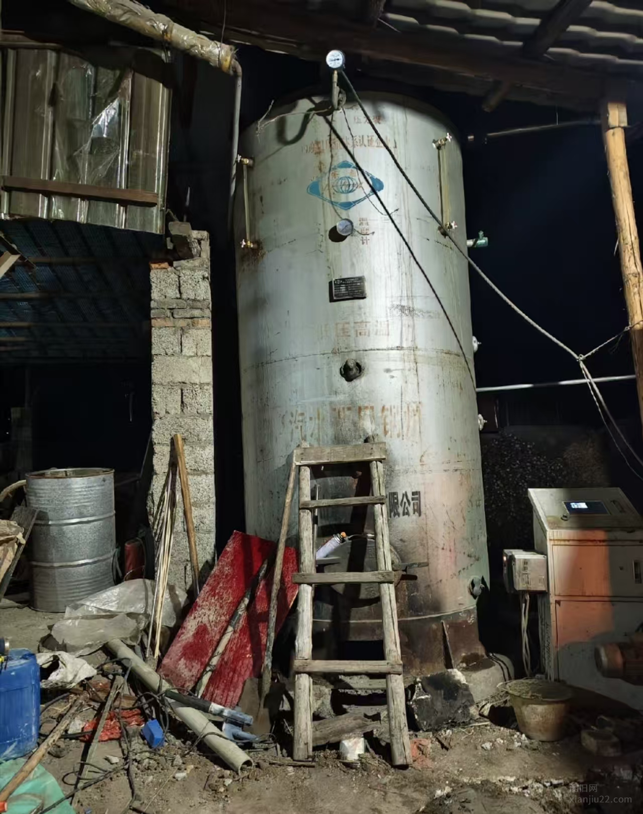 出山东鲁锅牌生物质颗粒蒸汽锅炉,银灰色,圆筒形设计,适用于100℃/180℃高温运行,