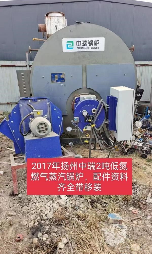 处理:2017年,2吨扬州中瑞低氮燃气蒸汽锅炉,配件手续齐全,厂子倒闭了,使用期间没出现问题。有需要的朋友请留言。