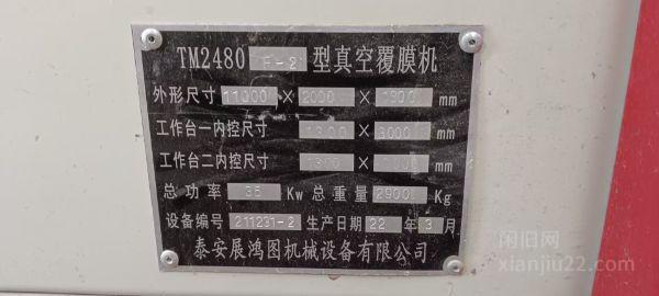转让二手3米木工真空覆膜机,二手F-2木工真空覆膜机,二手真空覆膜机,二手木工真空覆膜机,二手2480木工真空覆膜机,二手木工真空覆膜机,二手双锅木工真空覆膜机,二手展鸿木工真空覆膜机,9成新,2023年购买,自重2.9吨,参考价格9千元或面议,设备完好可以正常使用