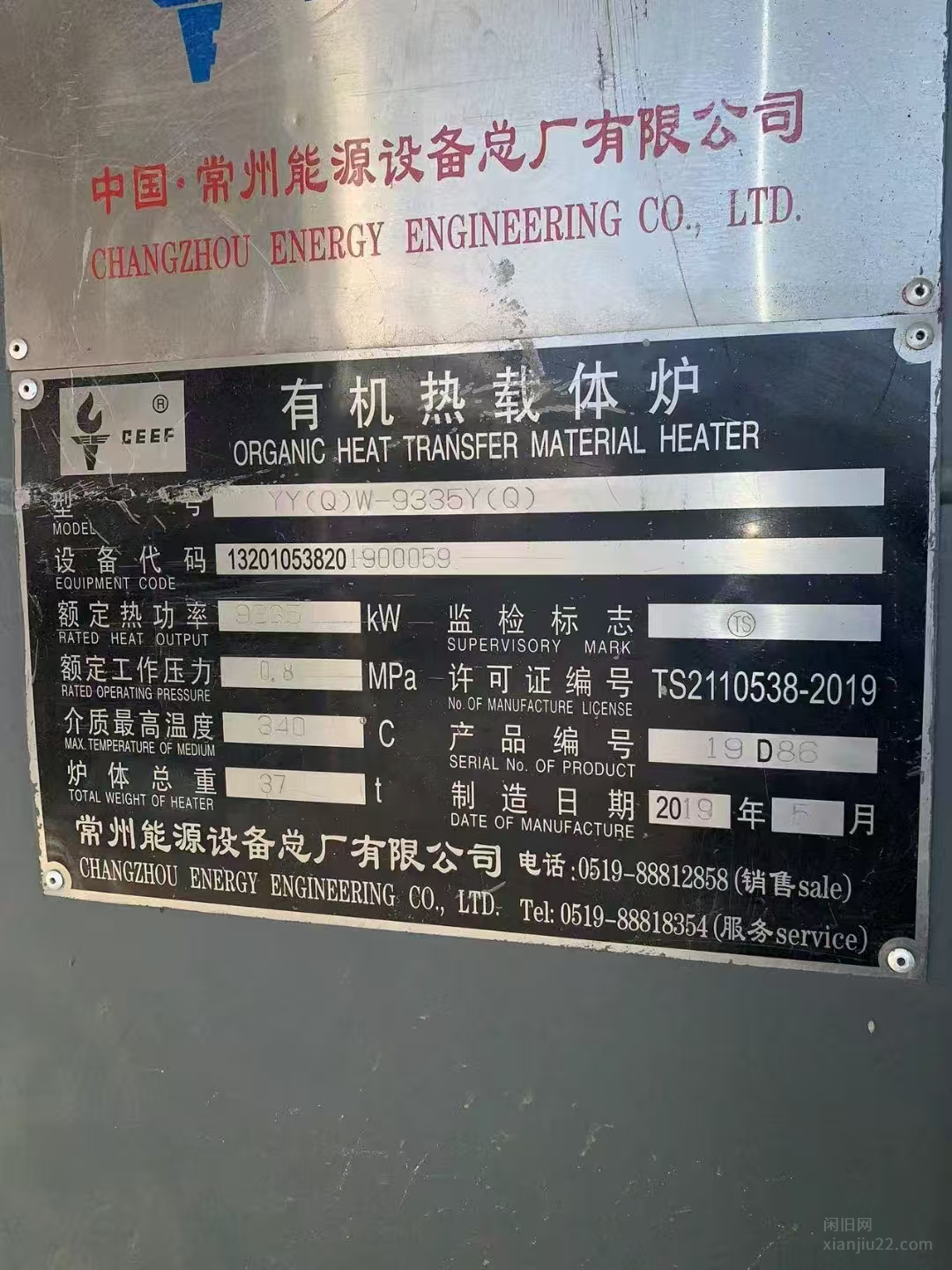 _19年生产800万大卡燃气导热油锅炉,出售800万大卡燃气导热油锅炉