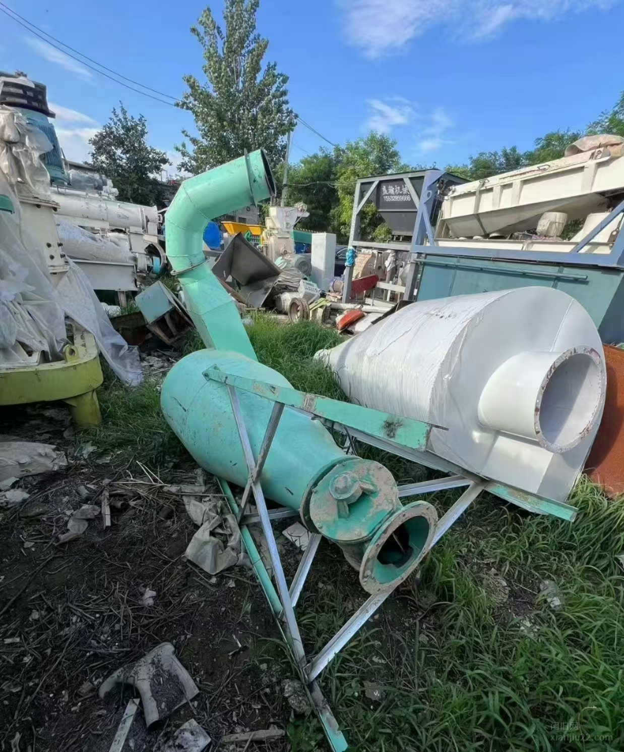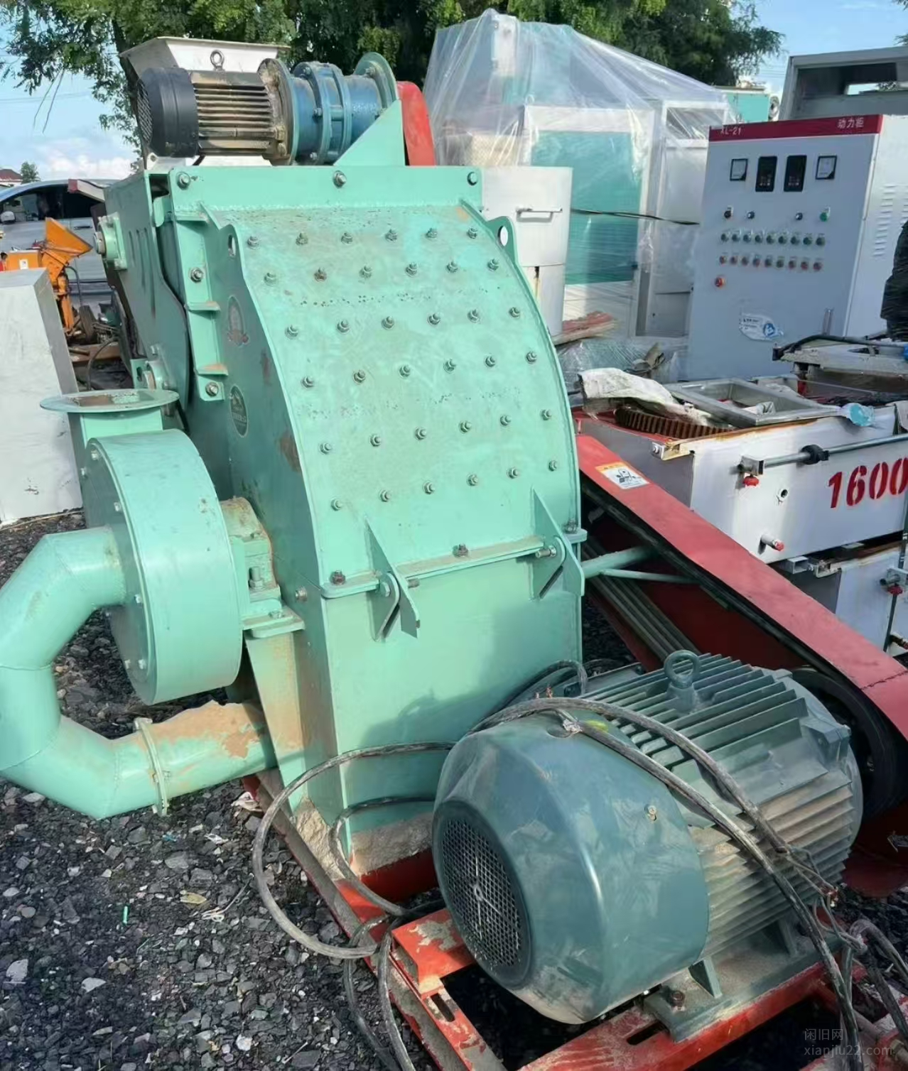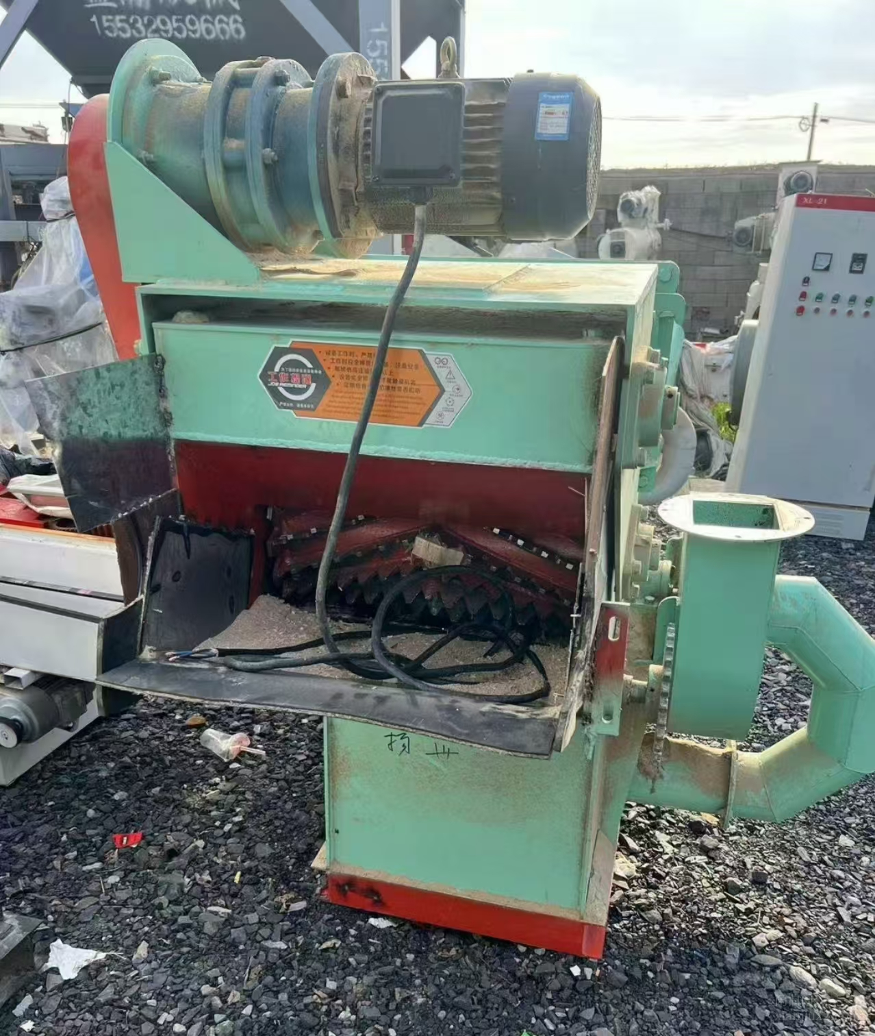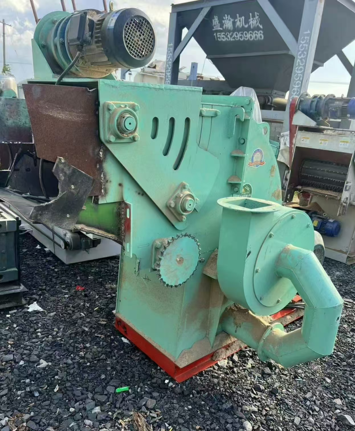 37千瓦强制进料木材粉碎机 进料输送带一条 沙克龙一个 闭风器一个 布袋除尘一个 电柜一个