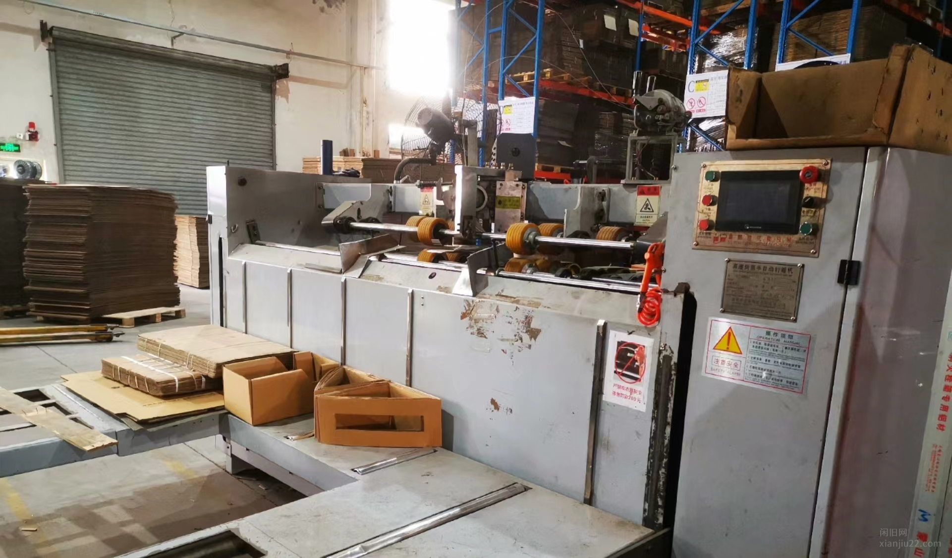 半自动高速纸箱打钉机,成色好正常使用。可打超大纸箱正唛1400侧唛900摇盖700。不包邮。还有一台14年的3色水墨印刷机1.4m*2.4m,一直在用的,设备在昆山