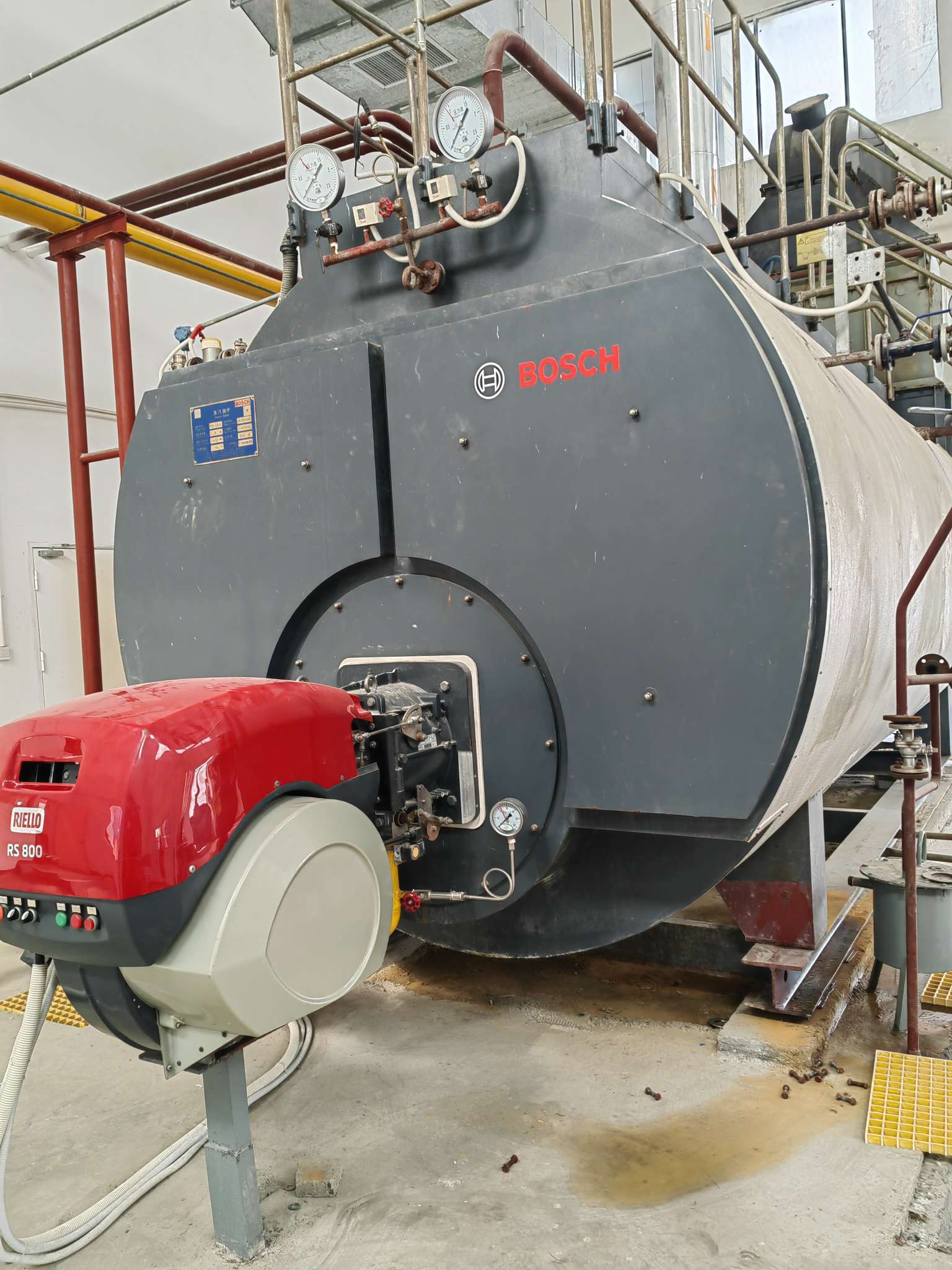 博世锅炉,8吨燃气蒸汽锅炉,13公斤压力,手续配件齐全,备用锅炉,内部无水垢。