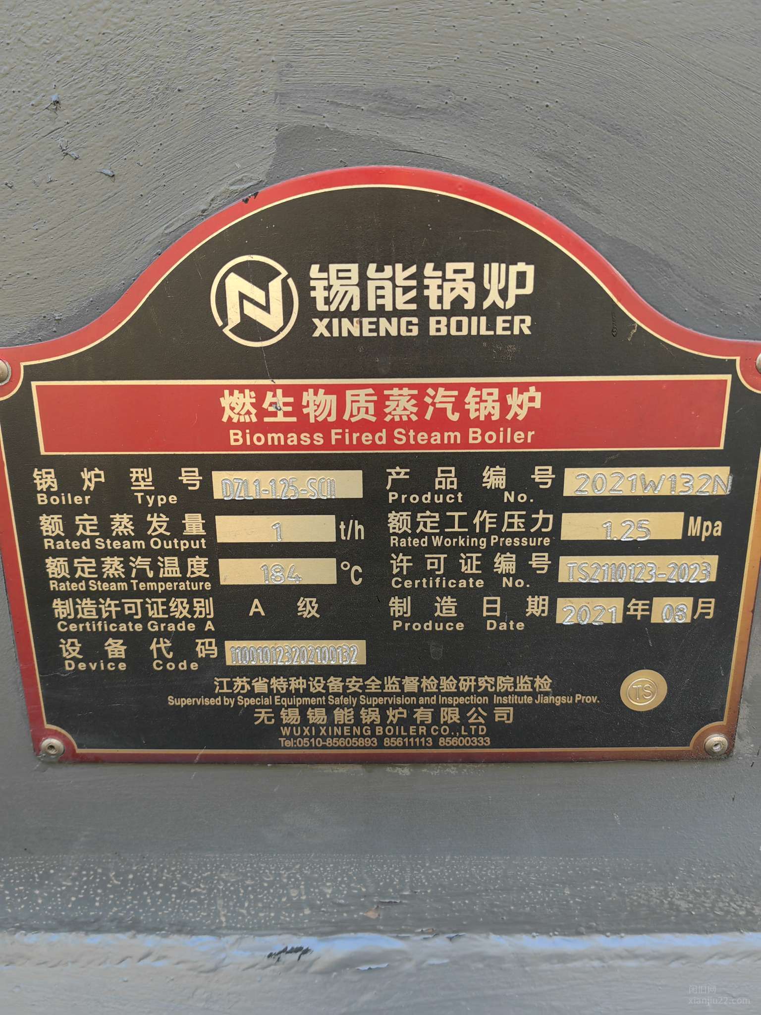 无锡锡能锅炉,1吨链条生物质蒸汽锅炉,燃煤蒸汽锅炉,手续配件齐全,锅炉99成新。